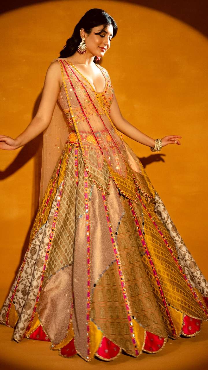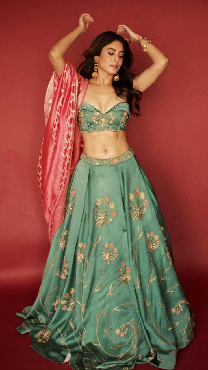 अभिनेत्री का हैवी फ्लेयर लहंगा सिल्वर वर्क चोली काफी गॉर्जियस लुक दे रही है। इसके संग आप कोई भी नेटिड दुपट्टा कैरी कर सकती हैं।