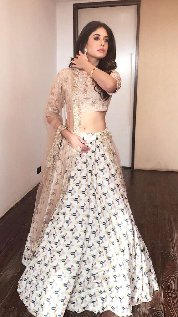आप कृतिका के जैसा प्रिंटेड लहंगा विद फ्रंट क्रिस क्रॉस डोरी वाली चोली के संग पहनकर एकदम पटाखा नजर आएंगी। ये एकदम यूनिक लुक देगा।