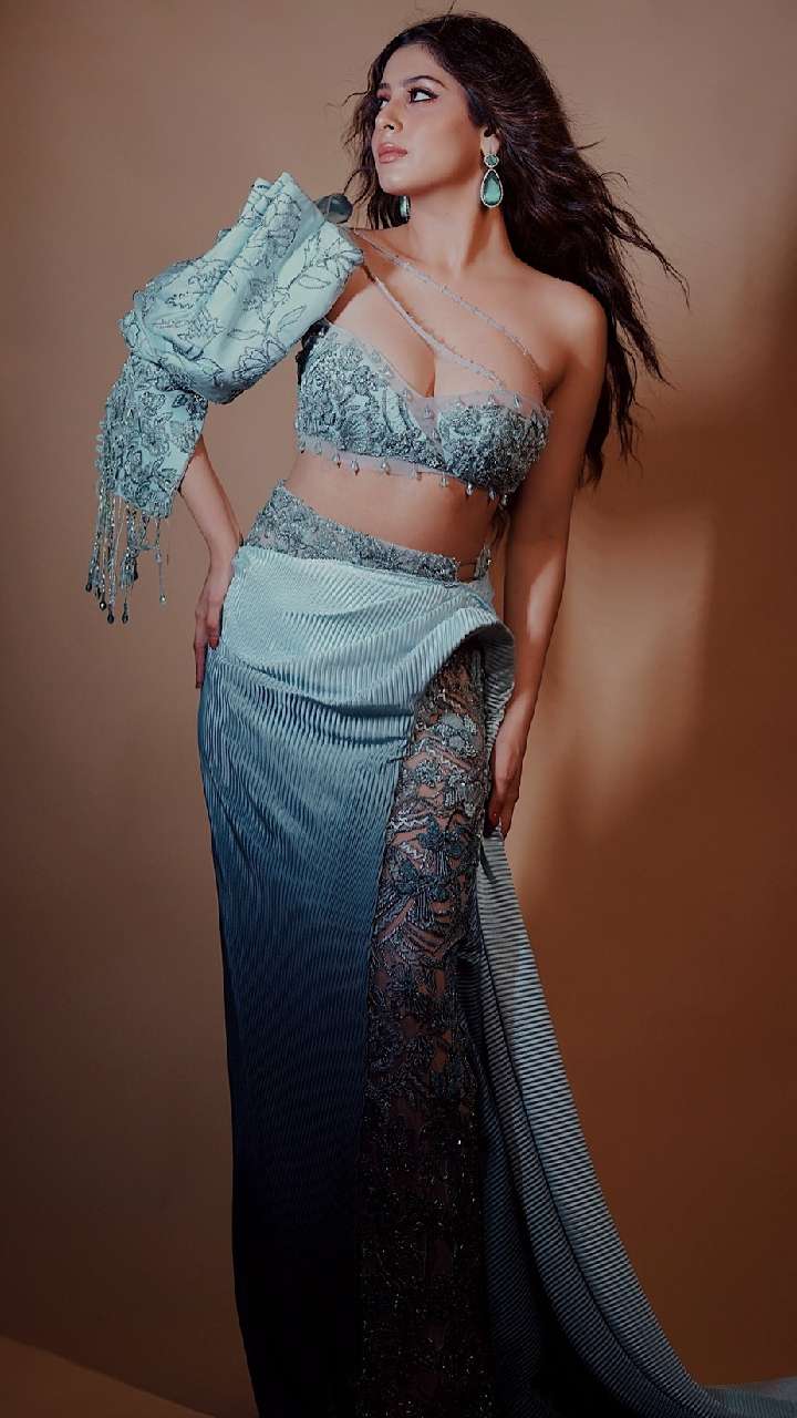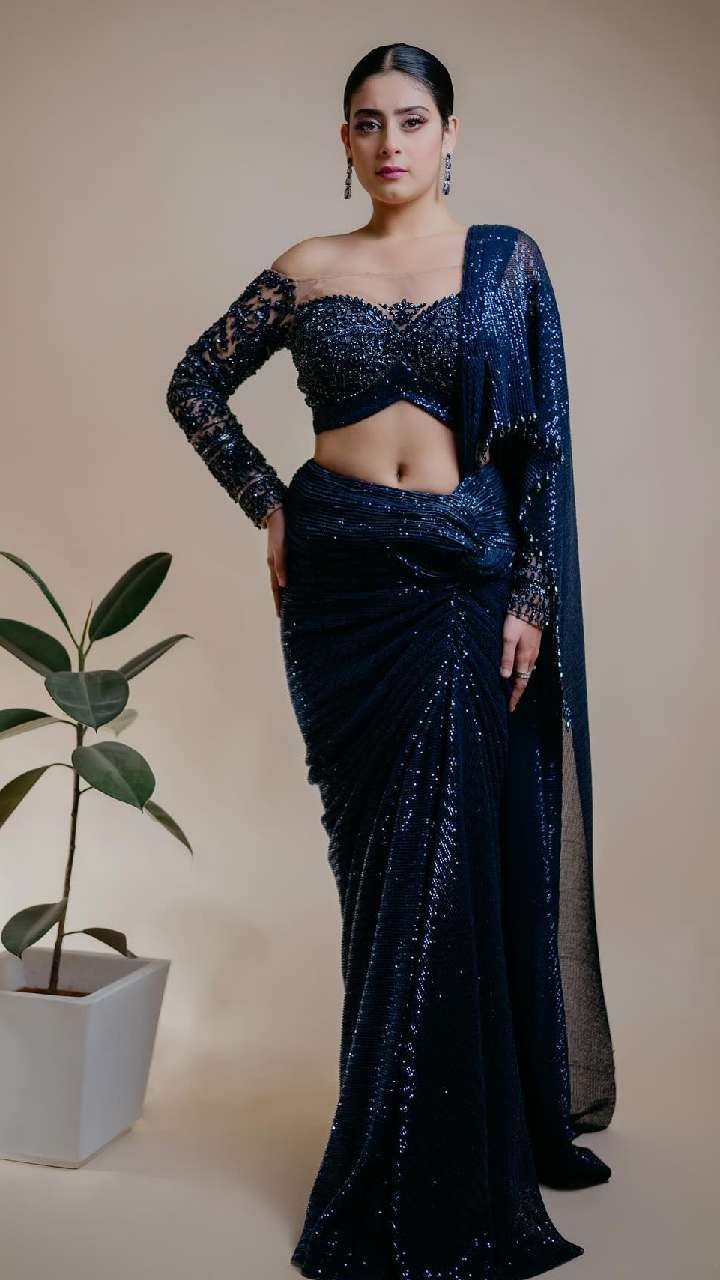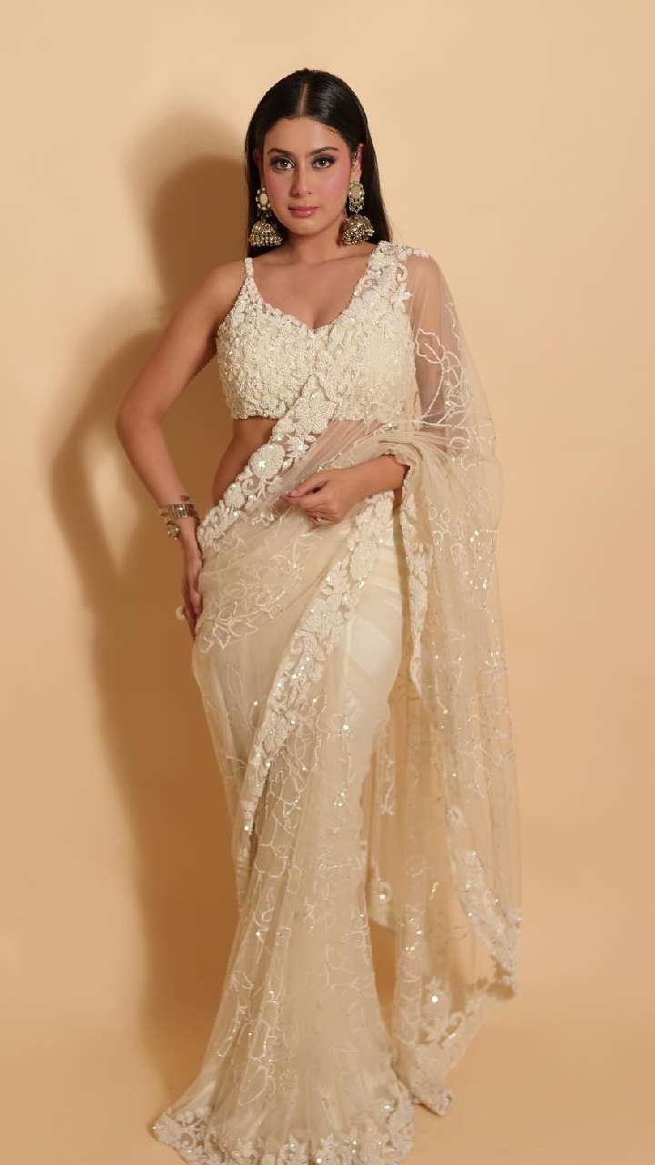 अगर आप अपने लुक को सबसे स्पेशल बनाना चाहती हैं तो आप ईशा मालवीय के इस लुक से इंस्पिरेशन लें। फेदर स्टाइल ब्लाउज में एक्ट्रेस हॉट लग रही हैं।