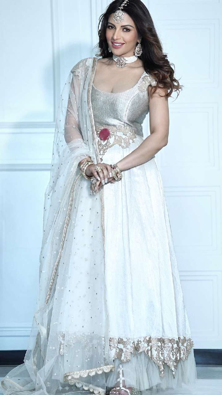 आप भी एक्ट्रेस के जैसा व्हाइट नेटिड लहंगे के साथ सिल्वर चोली से खुद को गॉर्जियस लुक दे सकती हैं। चबी गर्ल्स के लिए ये बेस्ट ऑप्शन है।