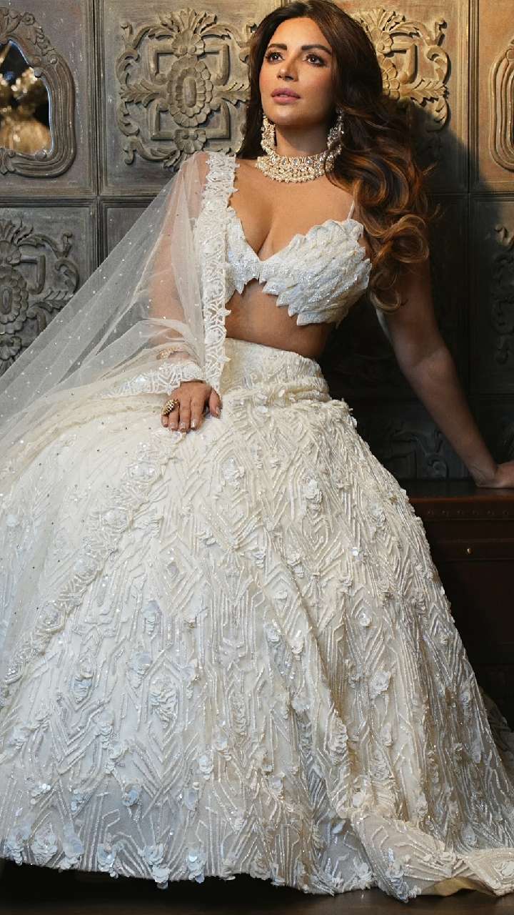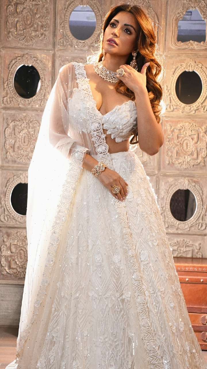 अभिनेत्री का व्हाइट हैवी वर्क लहंगा पहनकर चबी गर्ल्स स्नोव्हाइट नजर आएंगी। इसके साथ डीप नेक नूडल स्ट्रैप चोली लुक में हॉटनेस बढ़ा देगी।