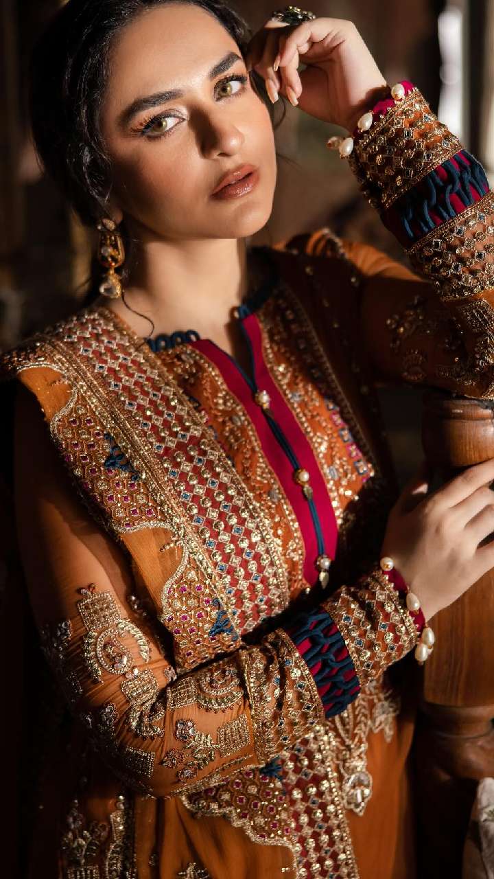 Yumna की इस ड्रेस पर यह डार्क ब्राउन लिपस्टिक शेड अट्रैक्टिव लग रहा है। पार्टी में यह शेड आपको स्पोर्ट लाइट बनाने का काम करेगा।