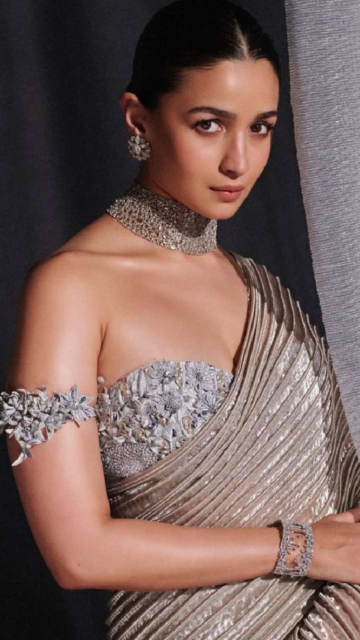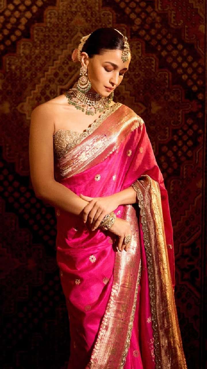 आलिया भट्ट का ये ब्लाउज और लुक उनको बेहद कॉम्प्लीमेंट के रहा है। टॉप्स और चोकर के साथ ये लुक और जच रहा है। आप भी इसे अपनी फ्रेंड की शादी में बना सकती हैं।