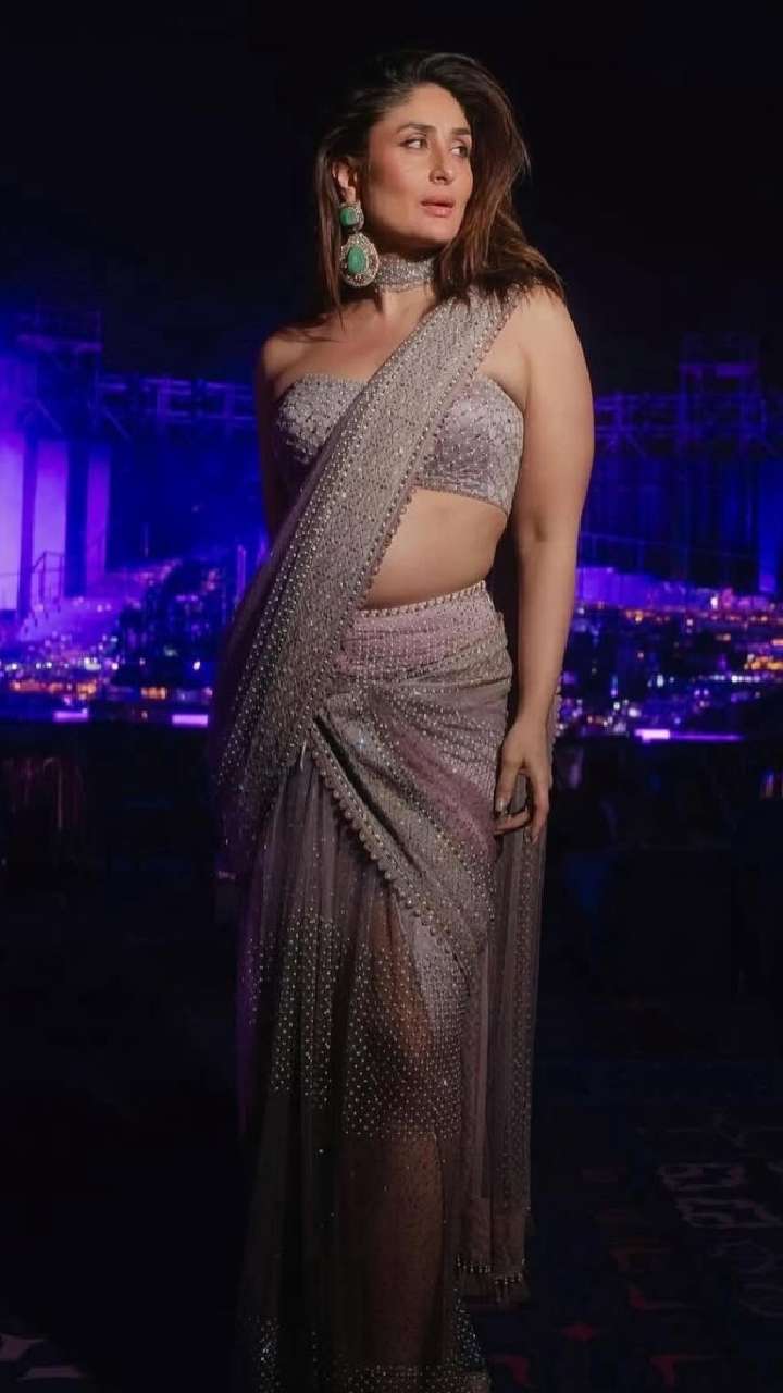स्लेटी कलर की इस साड़ी में बेबो बेहद ग्लैमरस लग रही है। इसके साथ उनका स्टाइल और कॉन्फिडेंस इस लुक को बहुत कॉम्प्लीमेंट कर रहा है।