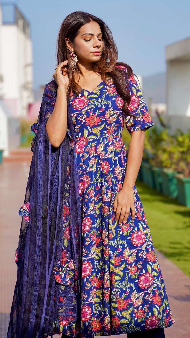 दशहरा और दुर्गा पूजा के लिए इस तरह का सिंपल सोबर कॉटन गरारा सूट भी बेस्ट चॉइस है। ऐसा सूट कंफर्ट के साथ प्रिटी लुक देगा।