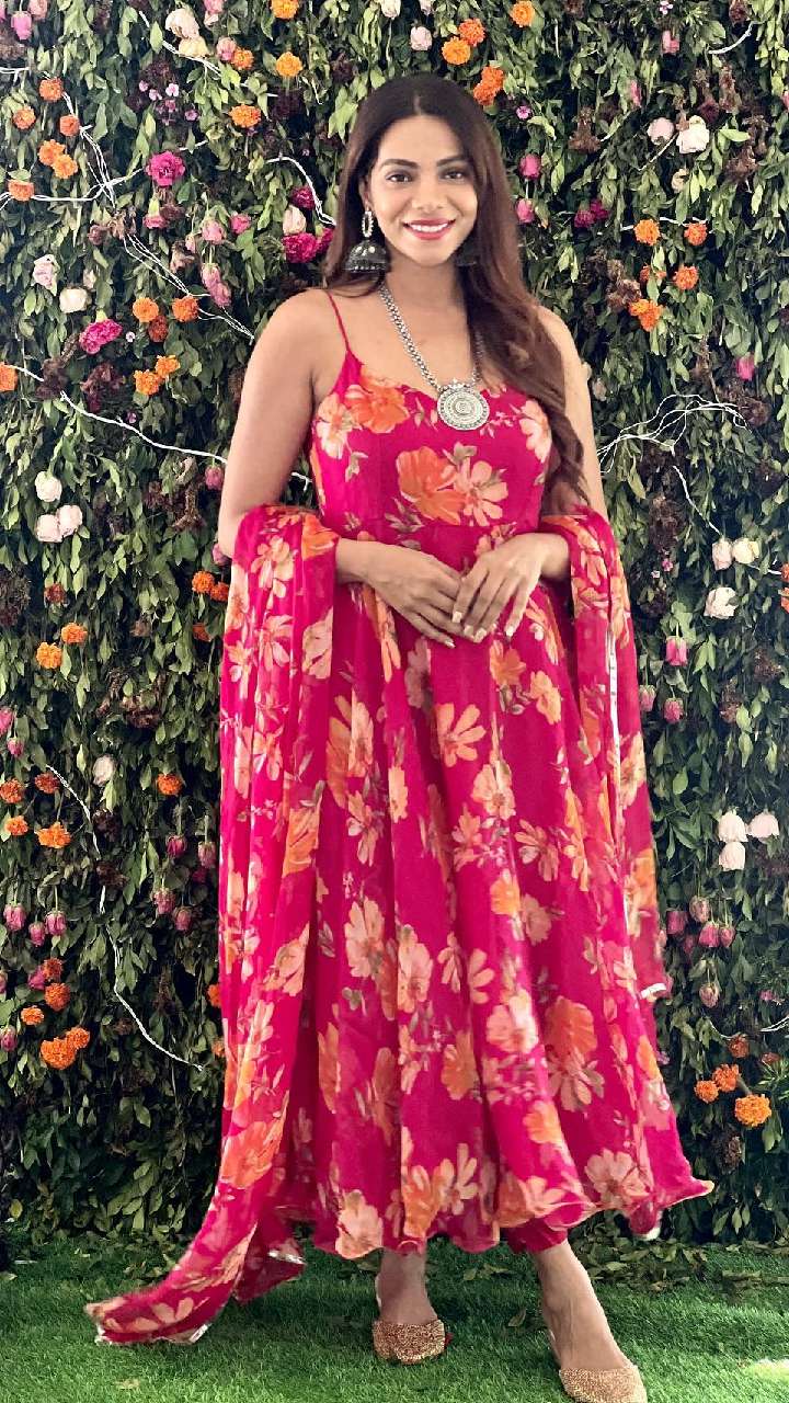 आप त्योहारों के सीजन में तन्वी के जैसे फ्लोरल प्रिंट नूडल स्ट्रैप सूट को भी स्टाइल कर सकती हैं। इसमें आप काफी स्मार्ट नजर आएंगी।