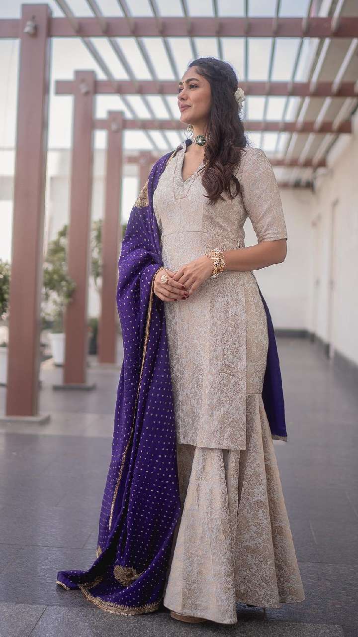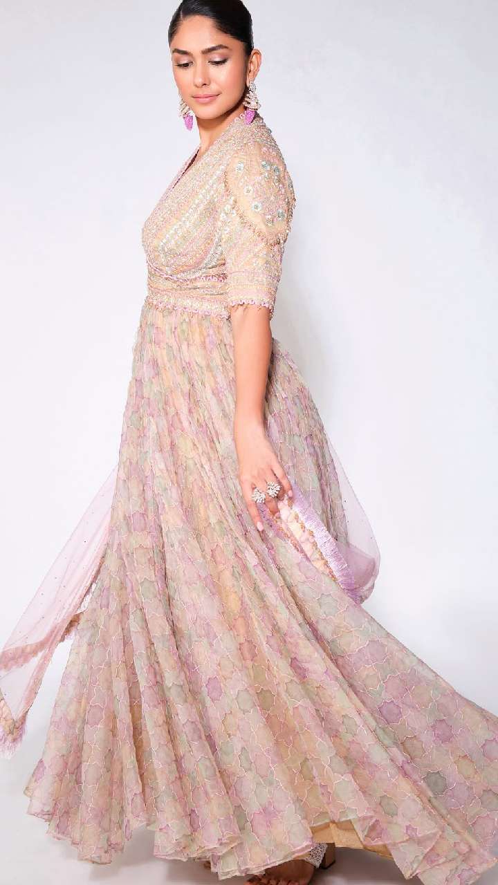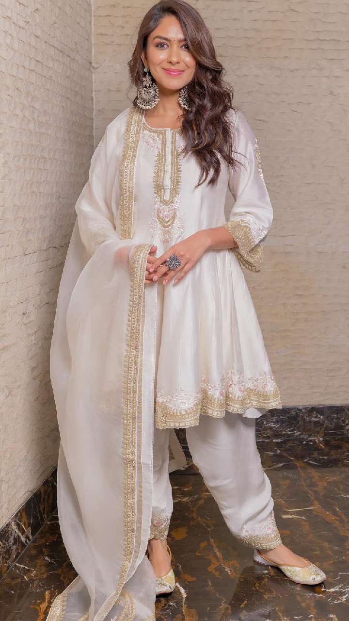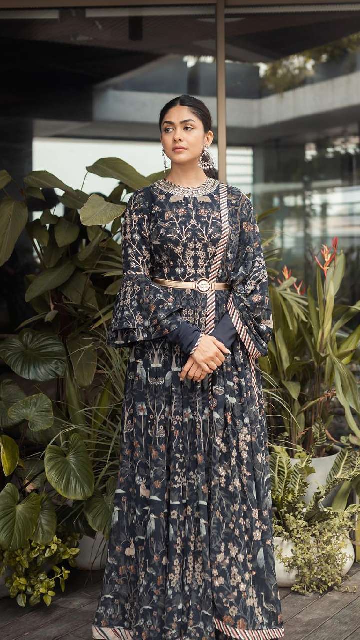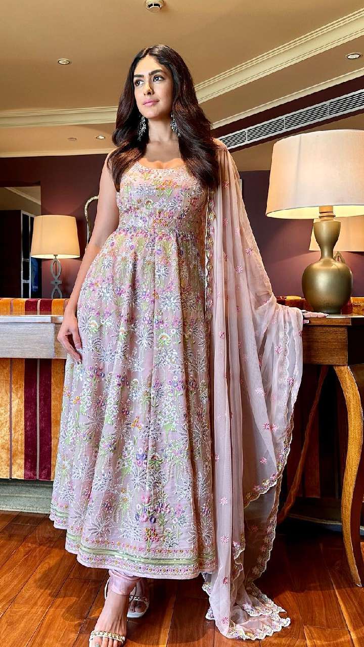 अगर आप अपने लुक को स्टाइलिश बनाना चाहती हैं तो आप मृणाल ठाकुर की तरह ही अनारकली सूट डिजाइन को स्टाइल कर सकती हैं।