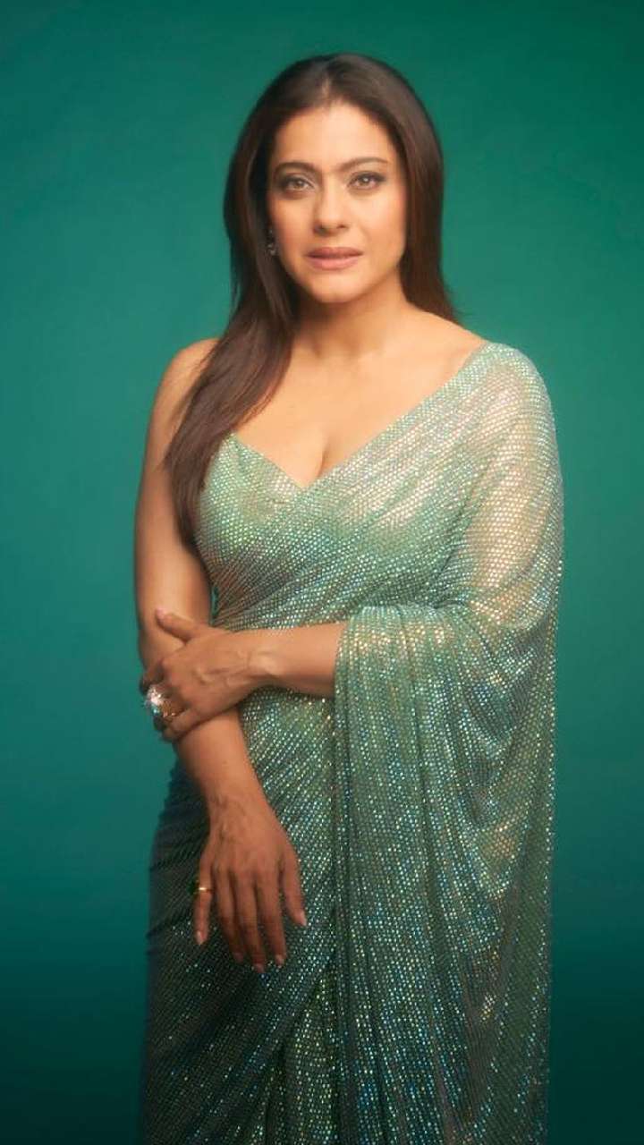 काजोल की ग्रीन व्हाइट डबल शेड वाली शिमरी साड़ी भी ऑफिस की दिवाली पार्टी के लिए परफेक्ट ऑप्शन है। इसमें आप एकदम स्मार्ट दिखेंगी।