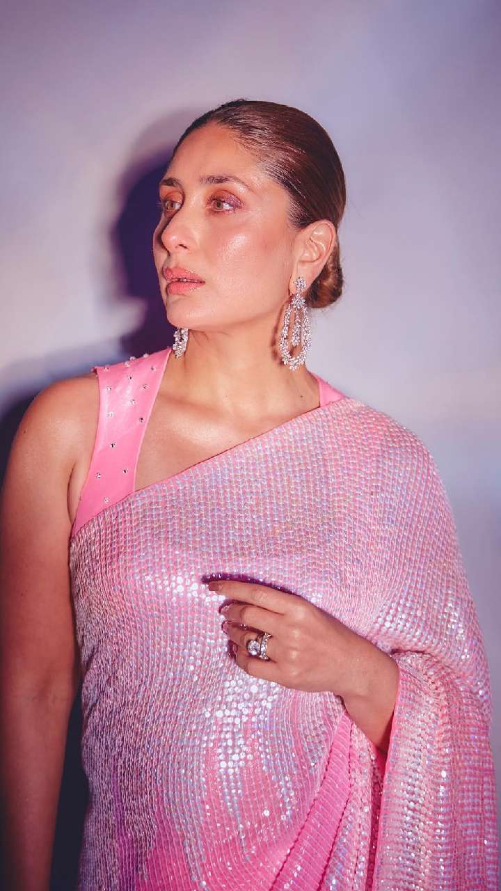 बेबो यानि करीना कपूर भी पिंक चमचमाती साड़ी स्लीवलेस साटन ब्लाउज भी दिवाली पार्टी के लिए बेस्ट ऑप्शन है। इसमें आप बोल्ड अंदाज में दिखेंगी।