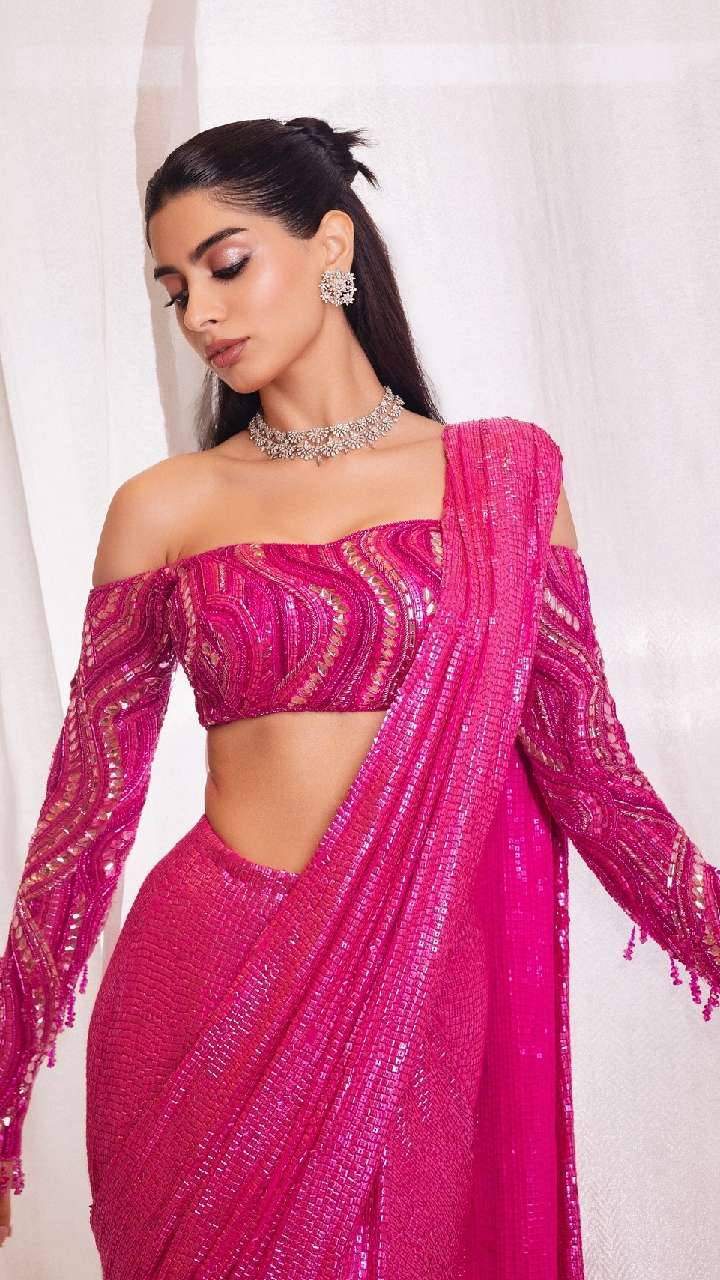इस दिवाली पार्टी यंग गर्ल्स ऑफिस में खुशी कपूर के जैसी ओंब्रे शेड ग्रीन व्हाइट शेड सिक्विन साड़ी को पहनकर हॉटनेस का जलवा दिखा सकती हैं।