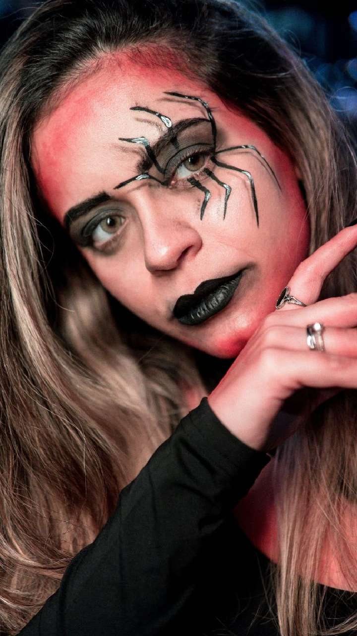 अगर आप पूरा चेहरा पेंट नहीं करना चाहतीं, तो सिर्फ आंखों के आसपास स्पाइडर वेब डिजाइन बनाएं। यह मिनिमल लेकिन बेहद आकर्षक लुक देता है।