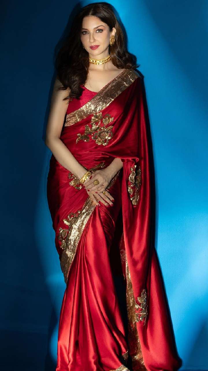 आप इस तरह के ¾ स्लीव्स ब्लाउज डिजाइन को भी पेयर कर सकती हैं। एक्ट्रेस का हर लुक काफी ज्यादा शानदार होता है।