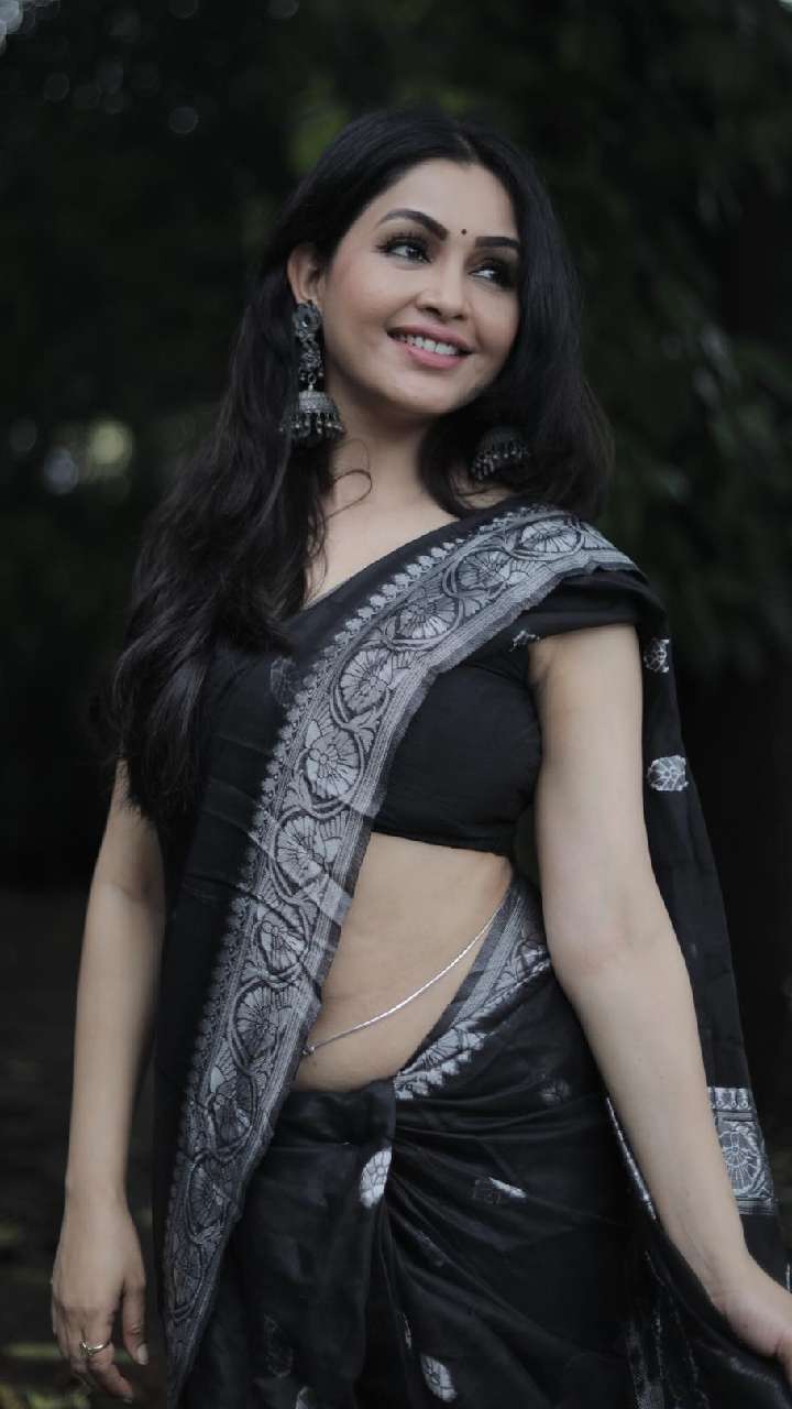 इस ब्लैक कलर की जरी बॉर्डर वाली साड़ी में डीवा का शानदार अंदाज देख फैंस मदहोश हो गए हैं।