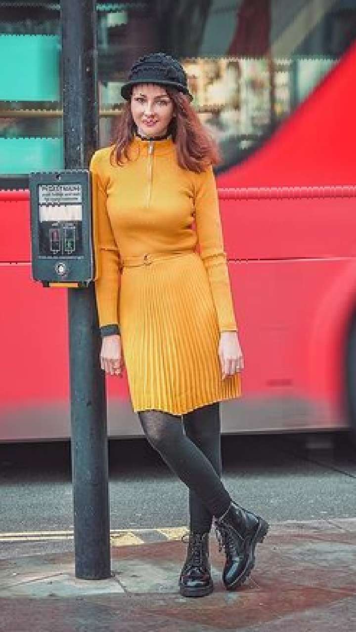 इसके साथ ही आप सौम्या के इस स्कर्ट संग स्टॉकिंस, फुल स्लीव्स टॉप और कैप लुक से भी आईडिया ले सकते हैं।