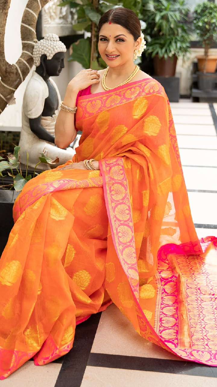 भाग्यश्री के पास साड़ियों का शानदार कलेक्शन है। अगर आप भी 56 की उम्र में ग्लैमरस दिखना चाहती हैं, तो एक्ट्रेस के इन साड़ियों से आइडिया लें।
