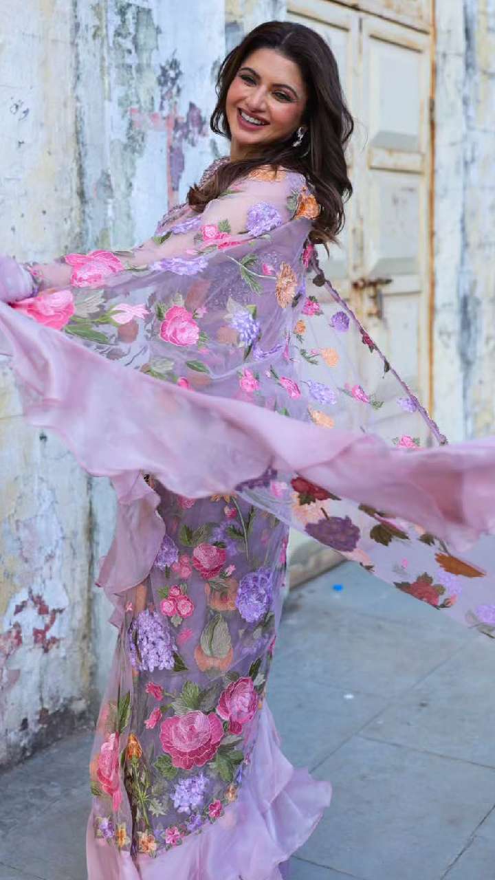 पिंक कलर की फ्लोरल प्रिंट साड़ी में एक्ट्रेस शानदार लग रही हैं। आप भी उनके इस लुक को कॉपी करके हसीन लग सकती हैं।