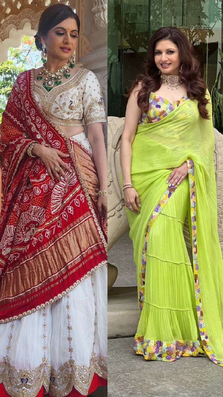 भाग्यश्री के पास वेस्टर्न के साथ साथ इंडियन आउटफिट्स का भी शानदार कलेक्शन है। आप भी एक्ट्रेस के साड़ी-लहंगा लुक कैरी कर सकती हैं।