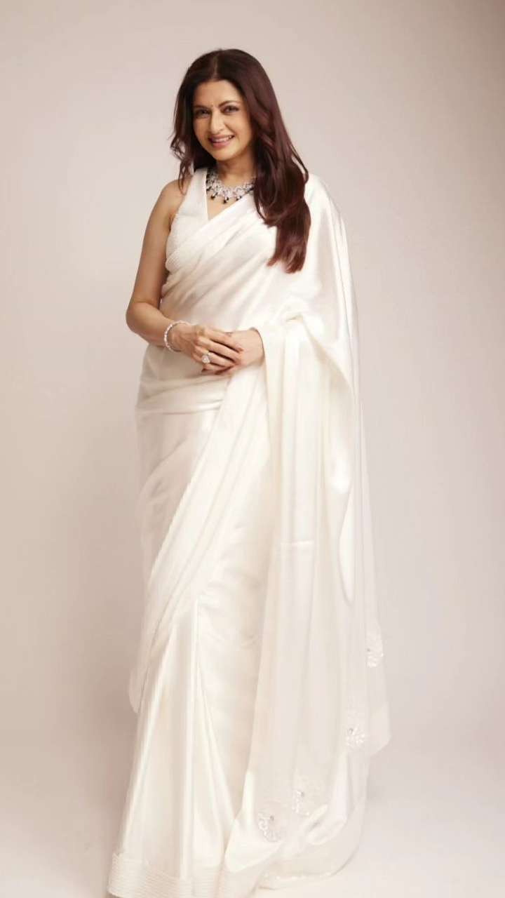 एक्ट्रेस भाग्यश्री के पास साड़ी का भी शानदार कलेक्शन है। आप भी एक्ट्रेस की तरह ही क्लासी व्हाइट साड़ी पेयर कर सकती हैं।