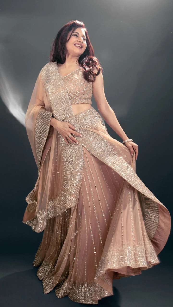 अगर आप किसी खास फंक्शन में लहंगा कैरी करना चाहती हैं तो आप भाग्यश्री की तरह ही हैवी वर्क लहंगा कैरी कर सकती हैं।