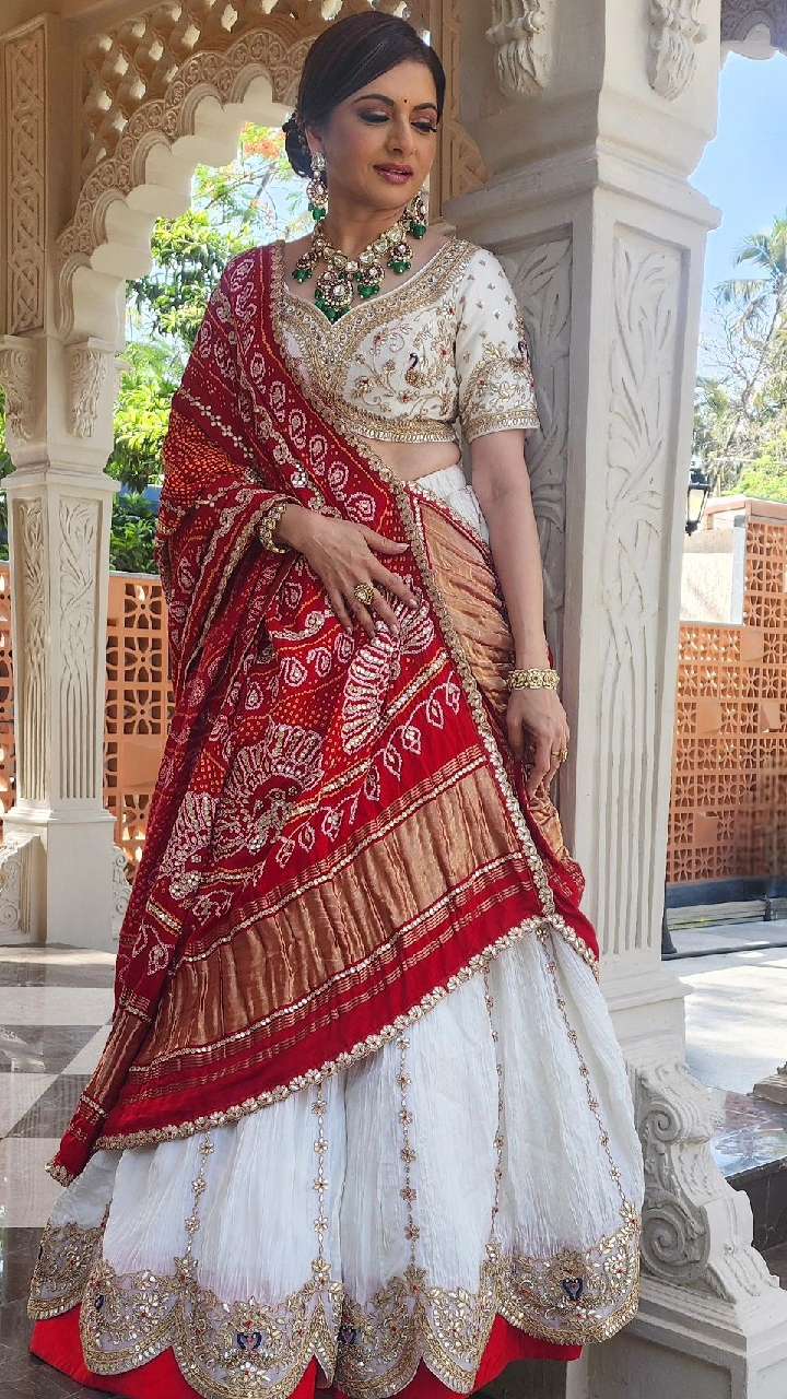 भाग्यश्री सोशल मीडिया पर काफी ज्यादा एक्टिव रहती हैं। आप एक्ट्रेस की तरह ही व्हाइट लहंगे के साथ रेड चुन्नी पेयर कर सकती हैं।