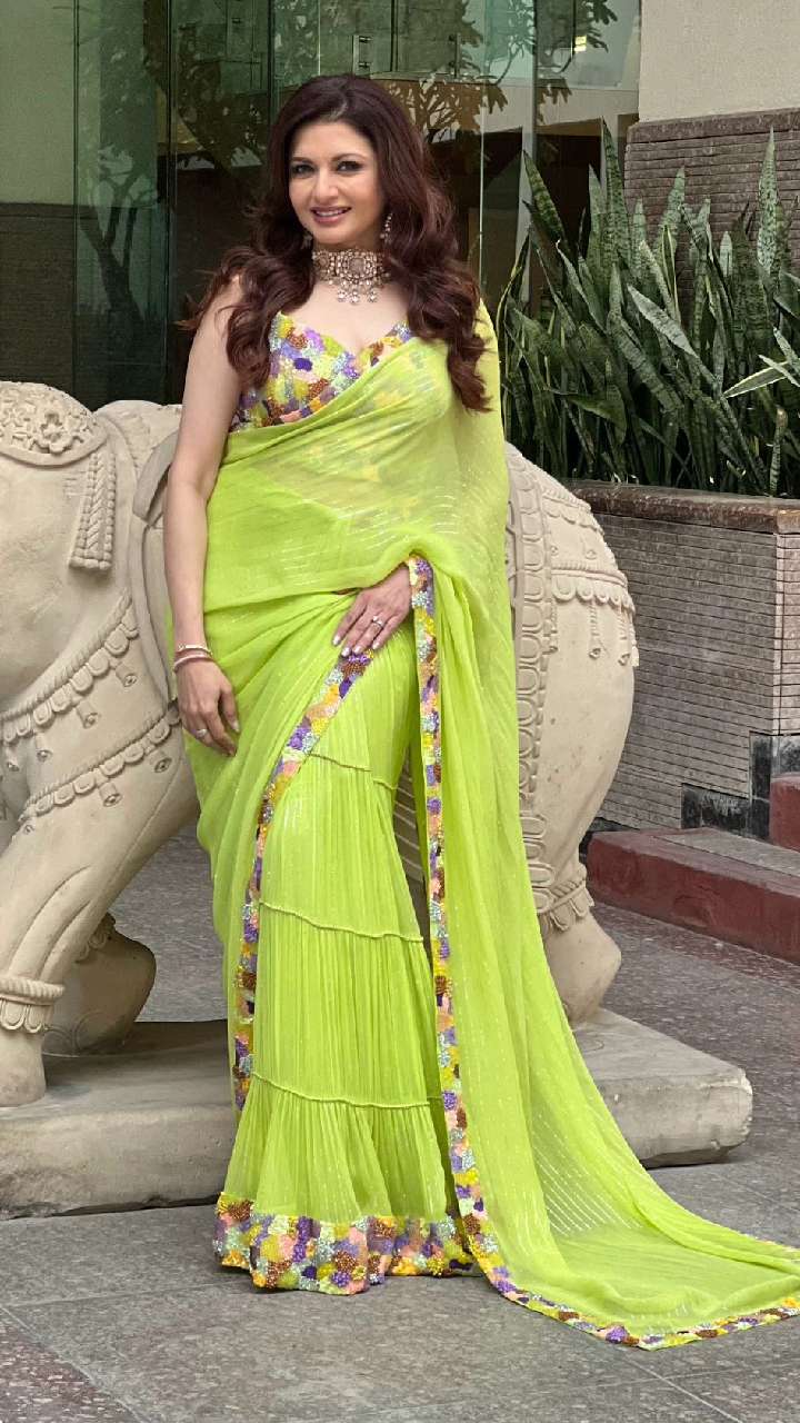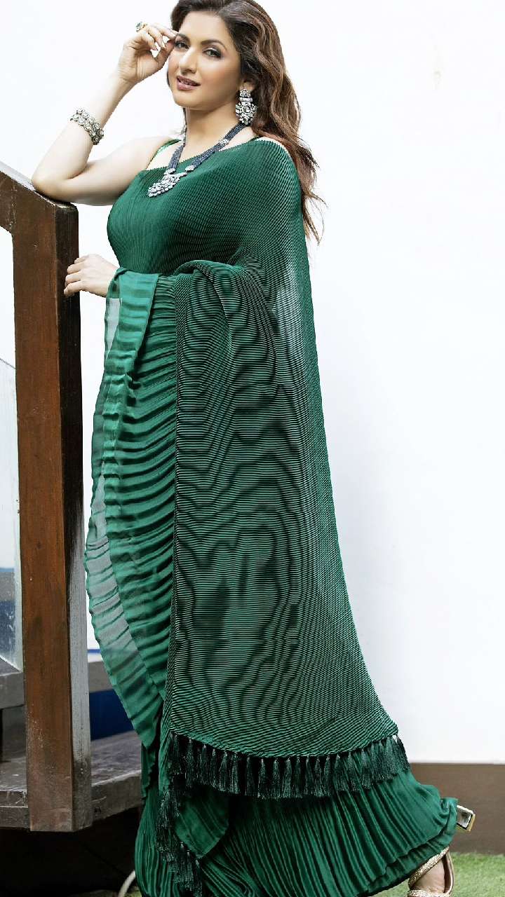 फिलहाल रफल साड़ी भी काफी ज्यादा ट्रेंड में चल रही हैं। आप भी एक्ट्रेस की इस ग्रीन साड़ी से इंस्पिरेशन ले सकती हैं।