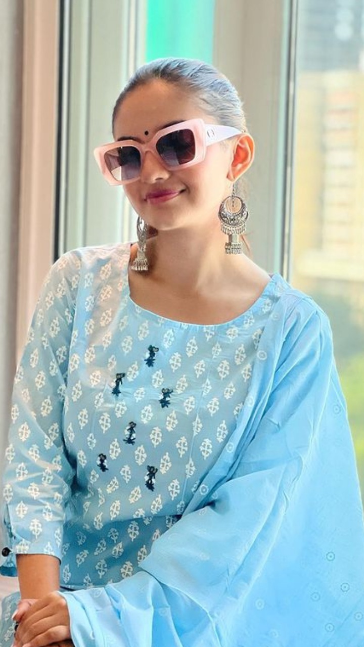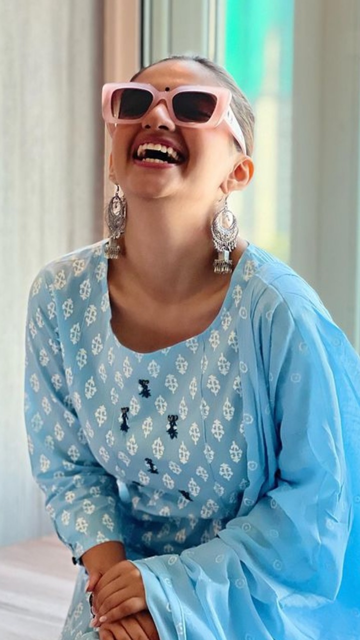 एक्ट्रेस एथनिक संग पिंक चश्मा लगा बेहद मस्तीभरे अंदाज में फोटोज क्लिक करा रही हैं।