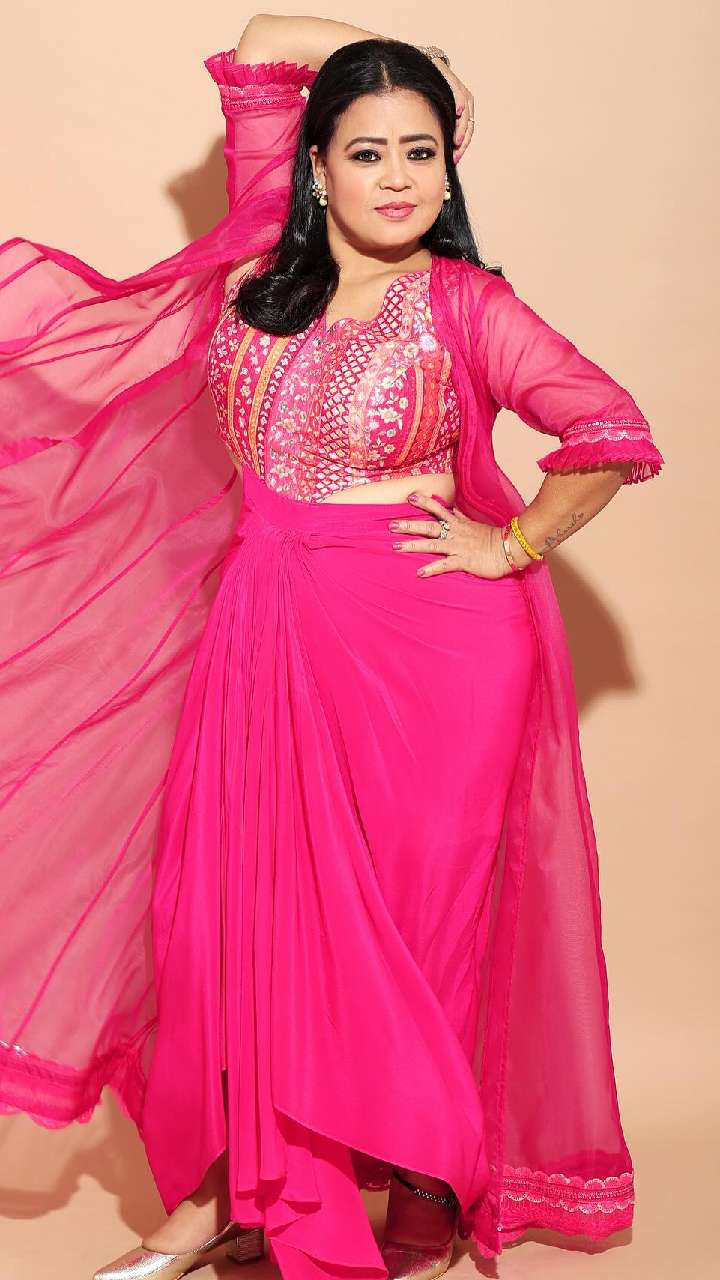 पिंक कलर के इंडो-वेस्टर्न आउटफिट में भारती सिंह बहुत खूबसूरत लग रहीं हैं। भारती का ये लुक वेडिंग परफेक्ट है।