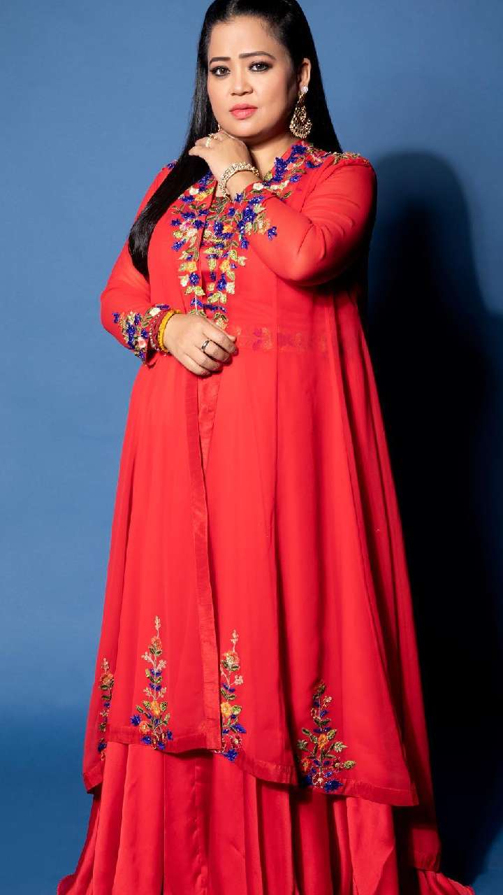 रेड कलर के सूट में भारती सिंह का लुक काफी ज्यादा अट्रैक्टिव लग रहा है। आप भी इस तरह के सूट को कैरी कर सकती हैं।