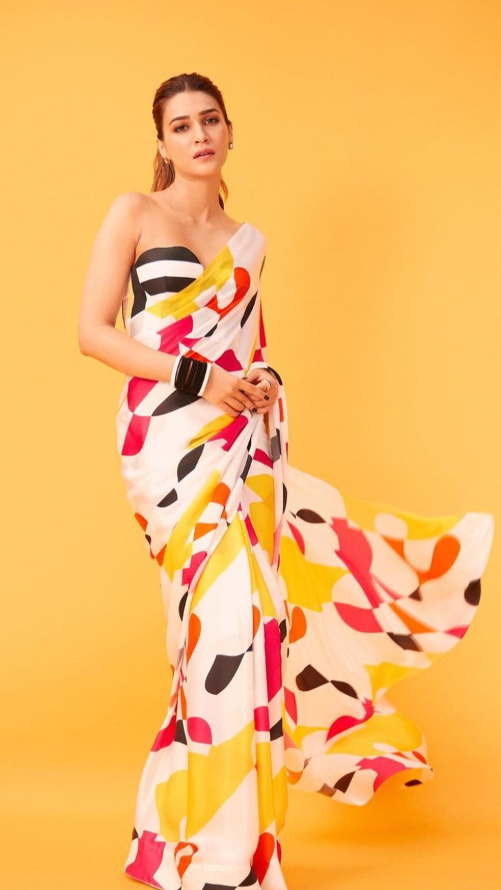 कृति अपनी इन तस्वीरों में कलरफुल साड़ी पहने हुए बेबाक अदाएं देती नजर आ रही हैं।