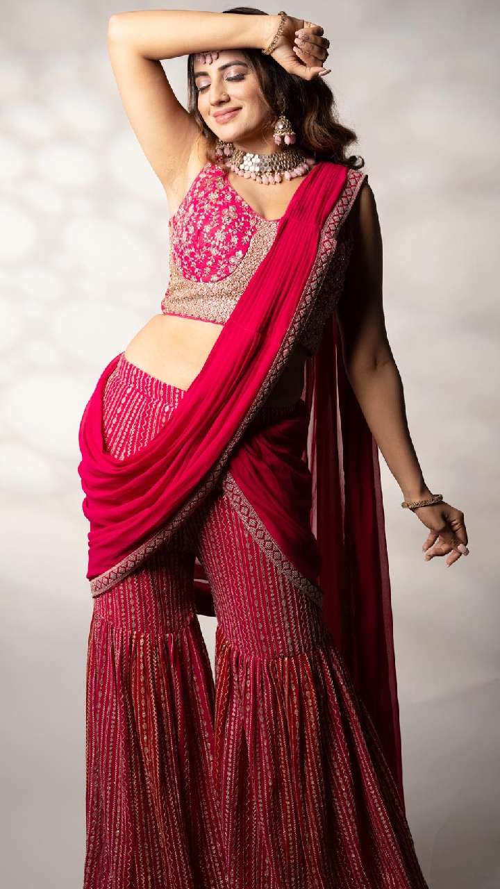 फिलहाल इंडो वेस्टर्न साड़ी काफी ज्यादा ट्रेंड में चल रहीं हैं। आप एक्ट्रेस के इस साड़ी लुक को कैरी कर सकती हैं।