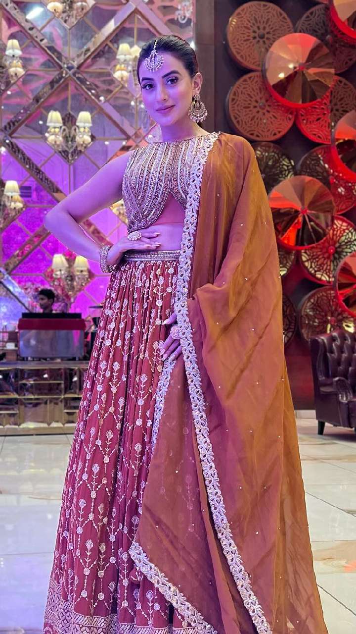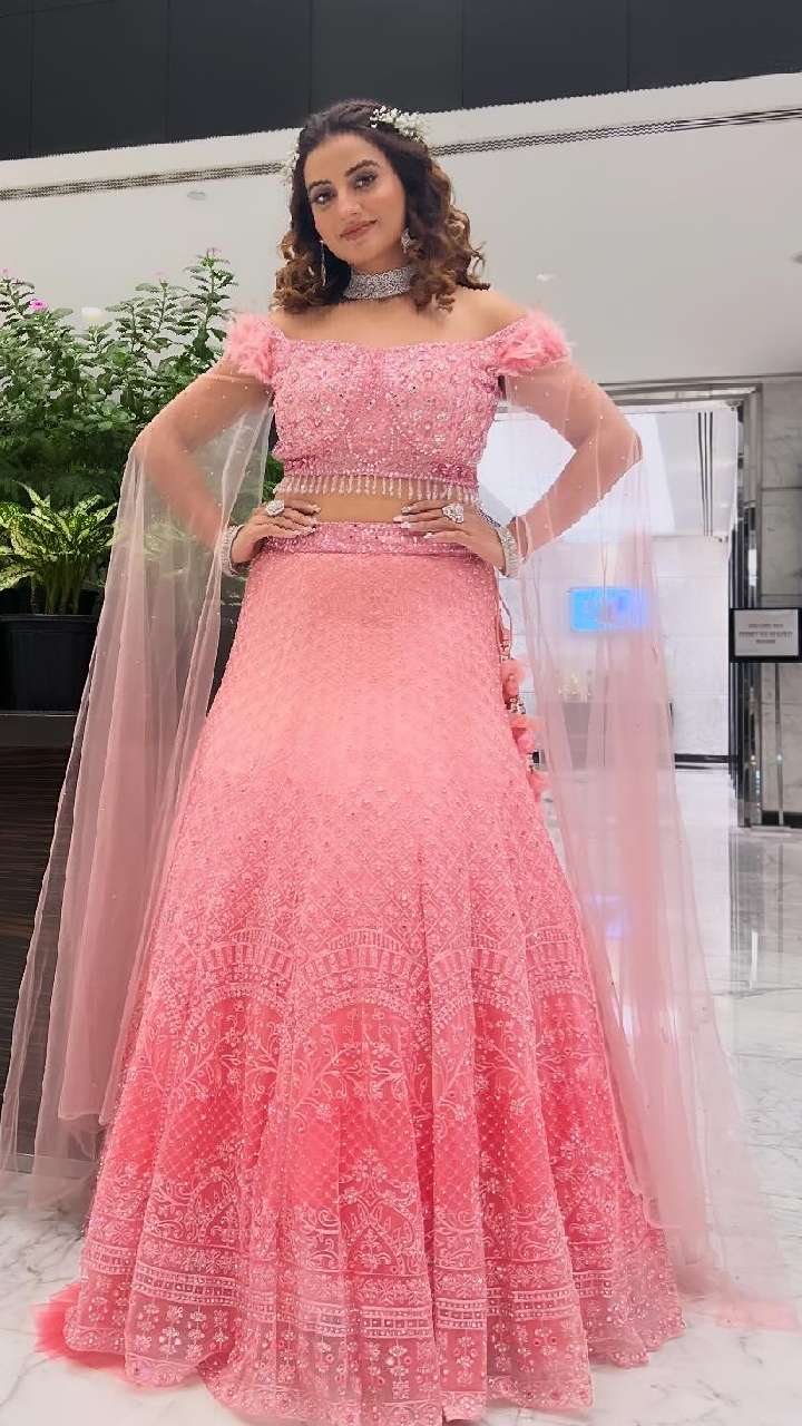 आप त्योहार पर अक्षरा सिंह का ये लुक भी कैरी कर सकती हैं। पिंक कलर के लहंगे में एक्ट्रेस बहुत सुंदर लग रहीं हैं।