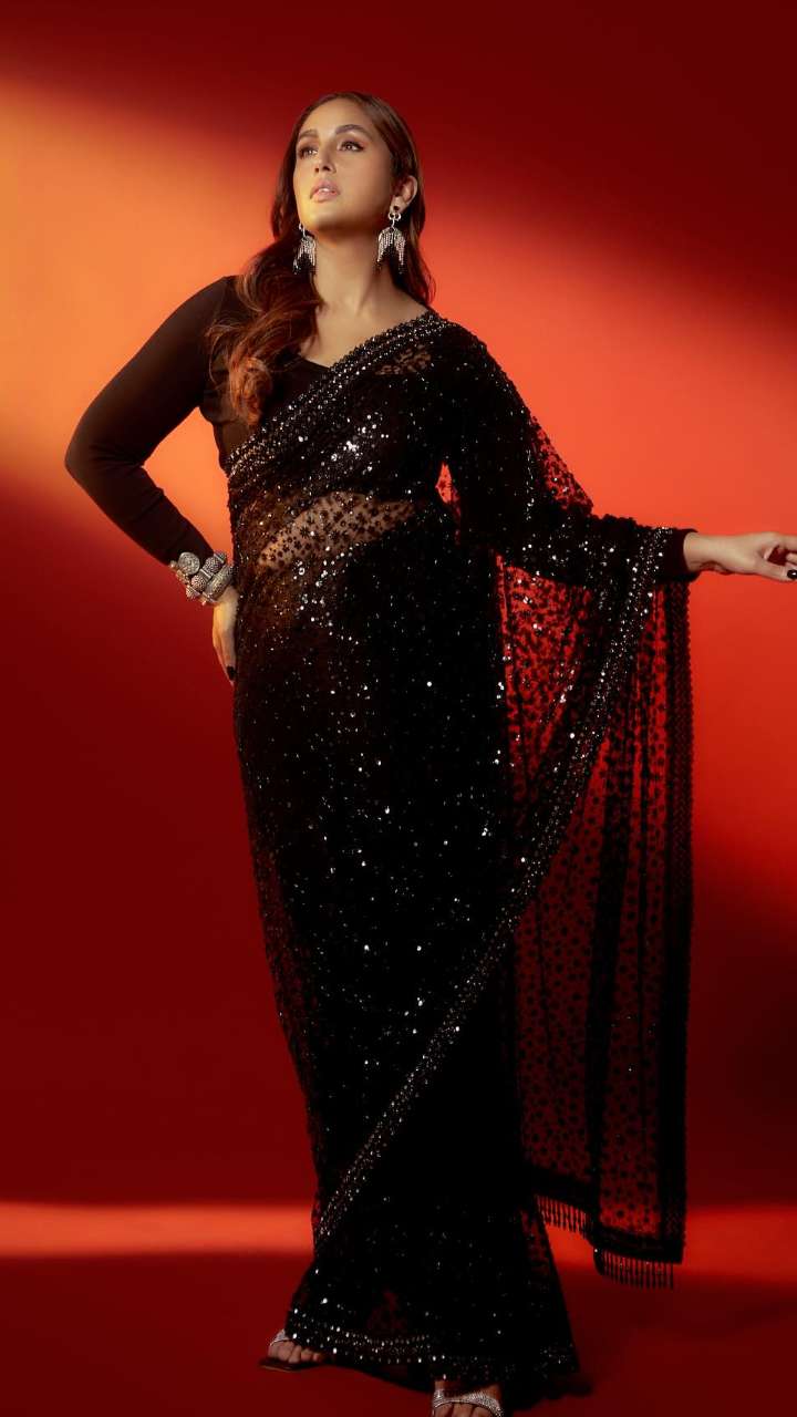 एक्ट्रेस के इस सितारा वर्क वाले शरारा सूट को आप किसी भी वेडिंग फंक्शन में कैरी करके खुद को खूबसूरत बना सकती हैं।