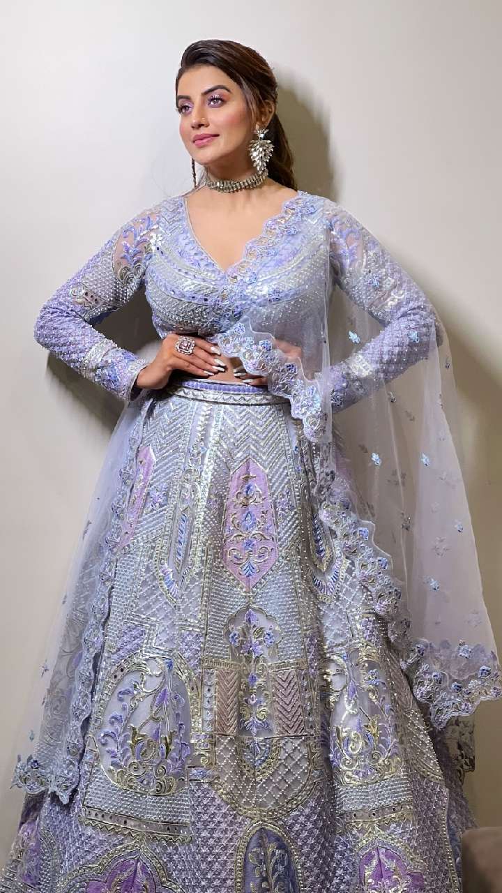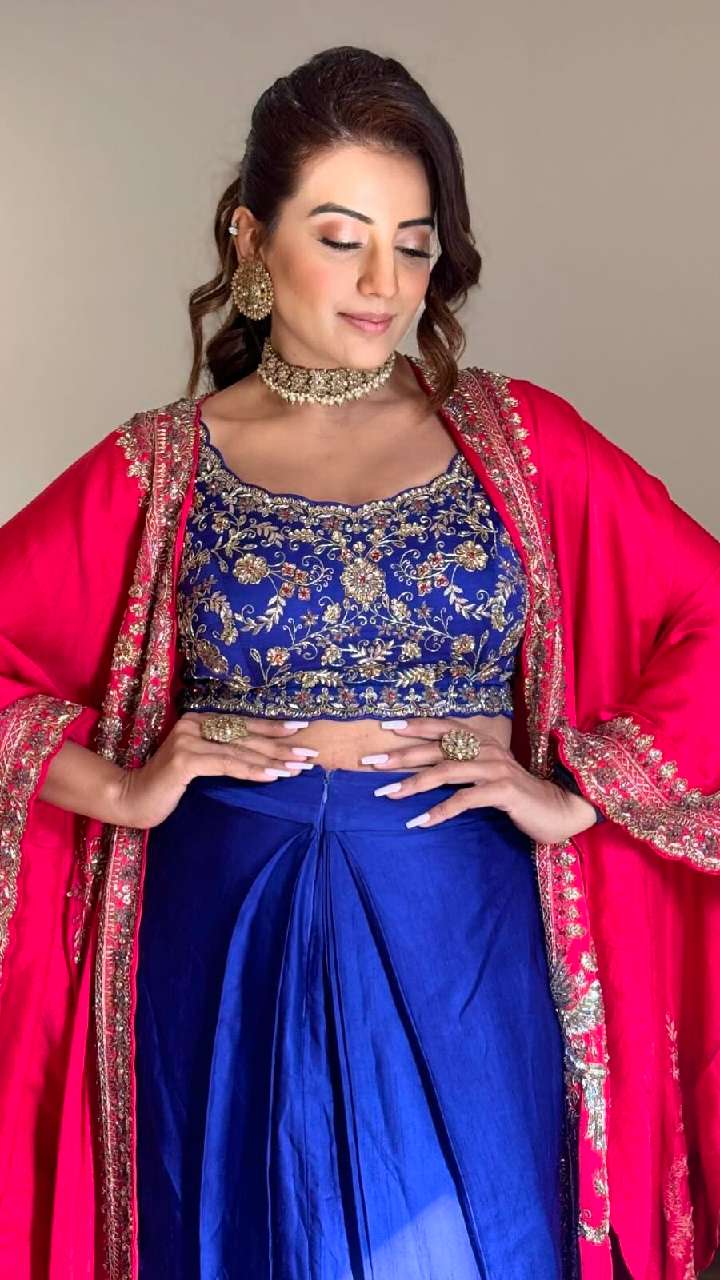 भोजपुरी क्वीन अक्षरा सिंह इस स्काई ब्लू कलर के हैवी वर्क लहंगे में बला की खूबसूरत लग रही हैं। इसके साथ उन्होंने सिल्वर ज्वैलरी पेयर की है।