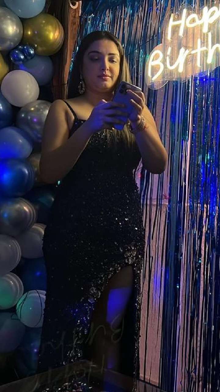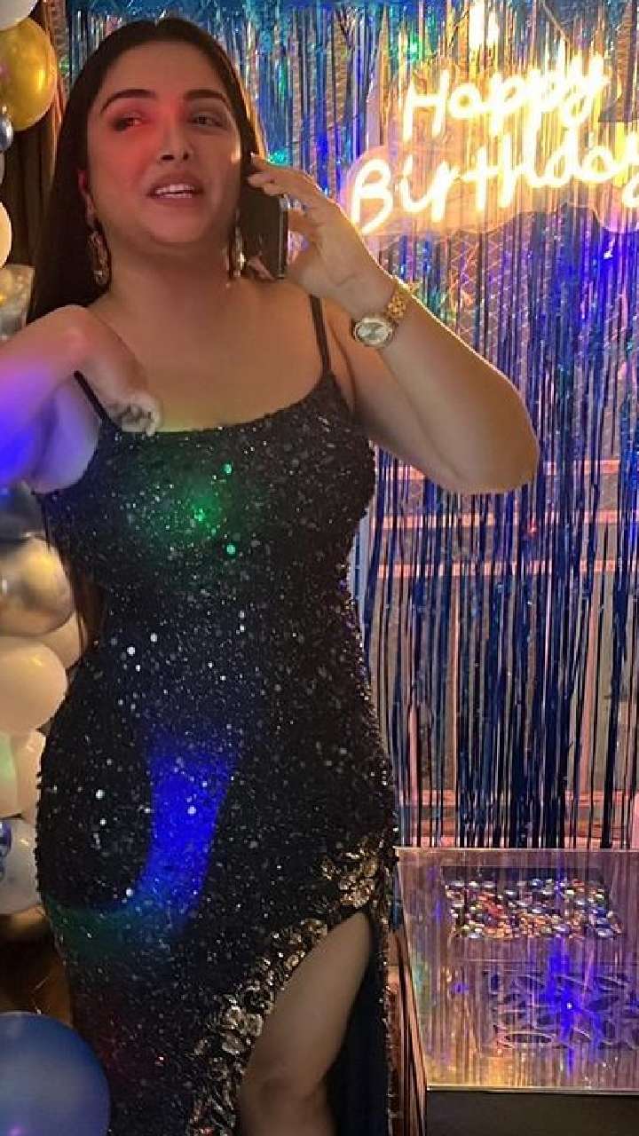 आम्रपाली दुबे बर्थडे पार्टी में हॉट लुक में नजर आ रही हैं।