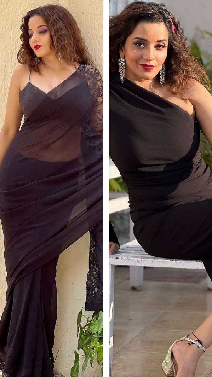 हाल में मोनालिसा ने साड़ी में अपना ऑल ब्लैक लुक शेयर किया है। कर्ली हेयर, डीपनैक स्ट्रेप ब्लाउज में डीवा बेहद कातिलाना लुक दे रही हैं।