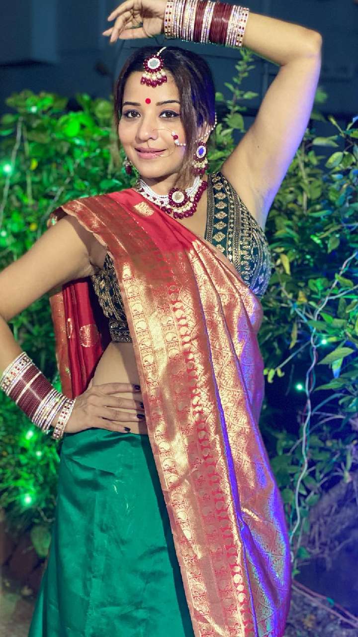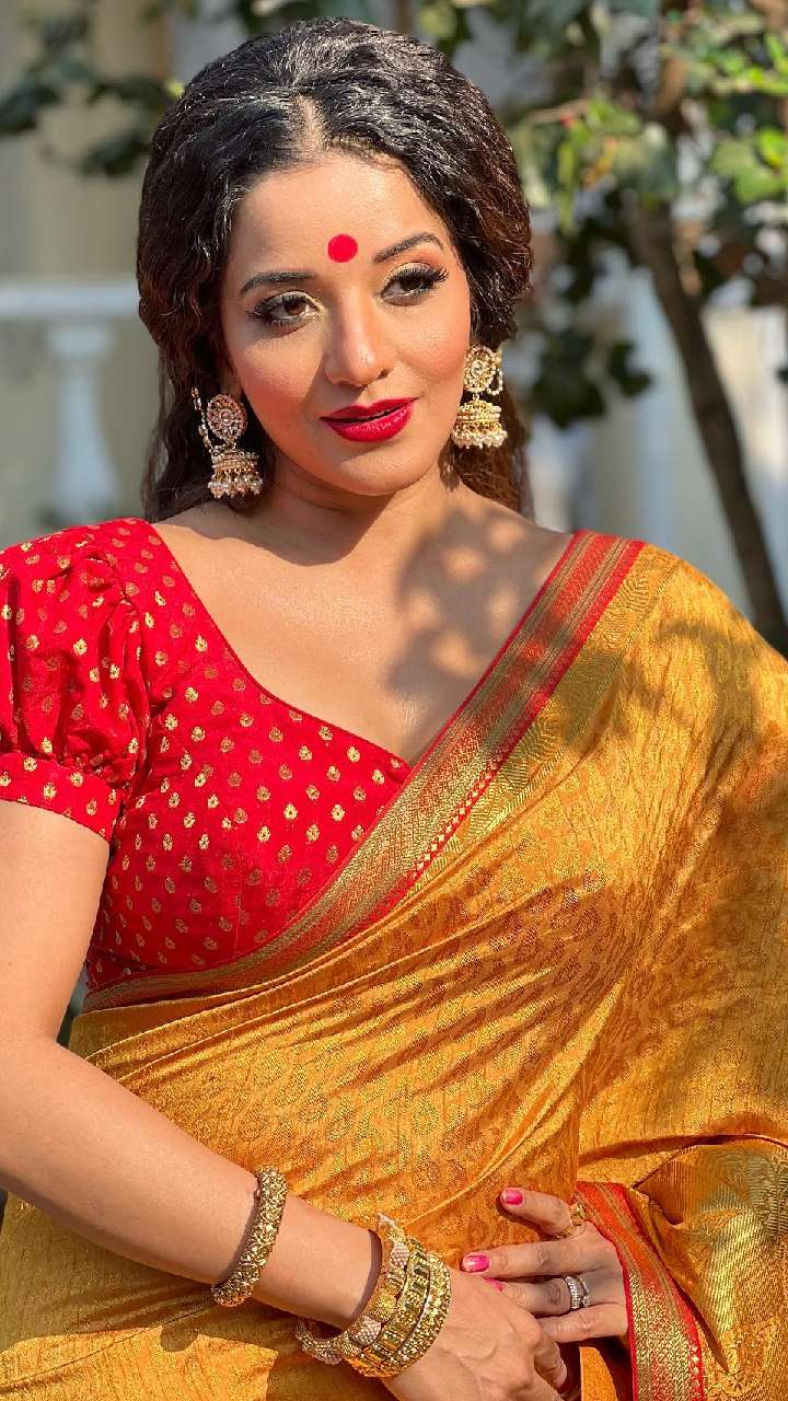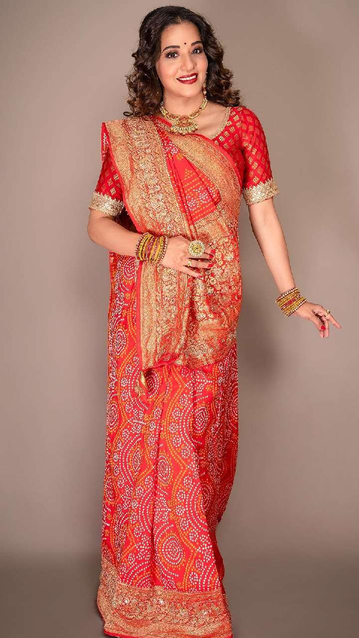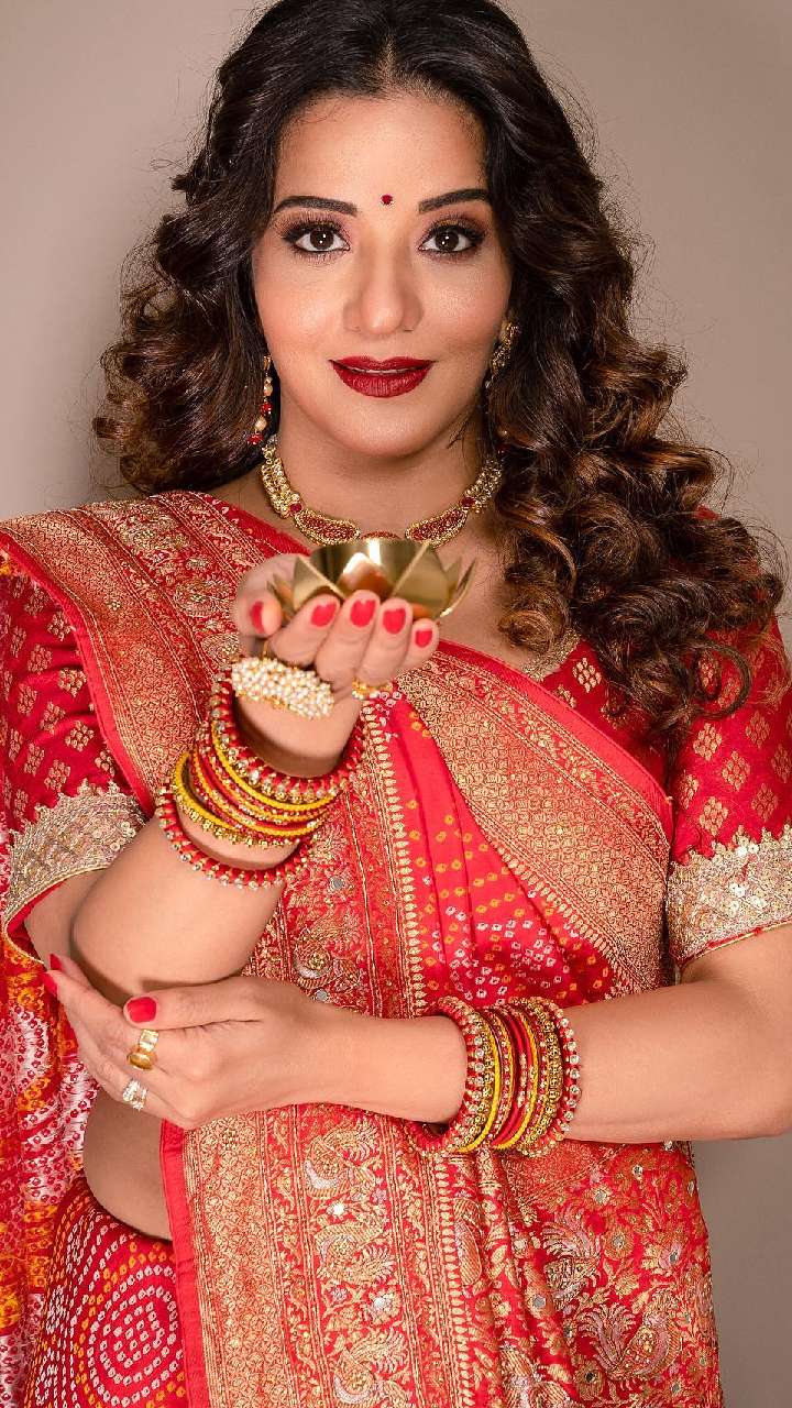 हाल में मोनालिसा ने छठ के मौके पर रेड और गोल्डन गोटा वर्क वाली साड़ी में अपना गॉर्जियस लुक शेयर किया है। इसके साथ एक्ट्रेस ने हाथों में चूड़ी, मेहंदी और मैचिंग ज्वैलरी भी पहनी है।
