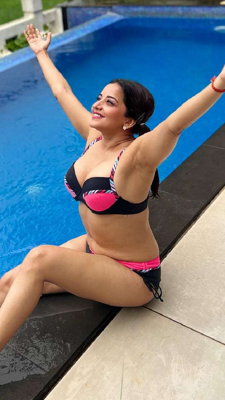 मोनालिसा की स्विमिंग पूल के किनारे टू पीस बिकिनी में कातिलाना अदाएं देखी जा सकती हैं।