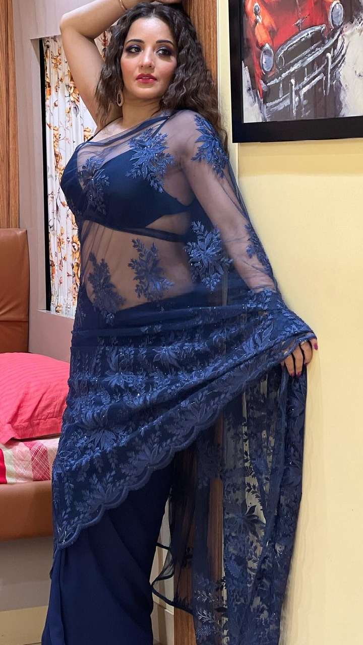 हॉटनेस के मामले में मोनालिसा हर किसी को पीछे छोड़ देती हैं, इस ब्लू कलर की नेट की साड़ी में भी एक्ट्रेस बहुत हॉट लग रहीं हैं।