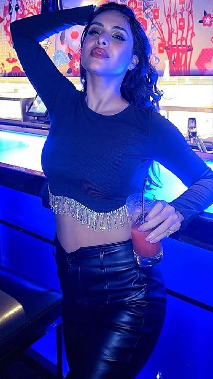 नेहा मलिक ब्लैक जीन्स और क्रॉप-टॉप में बेहद ही बोल्ड दिख रही हैं।