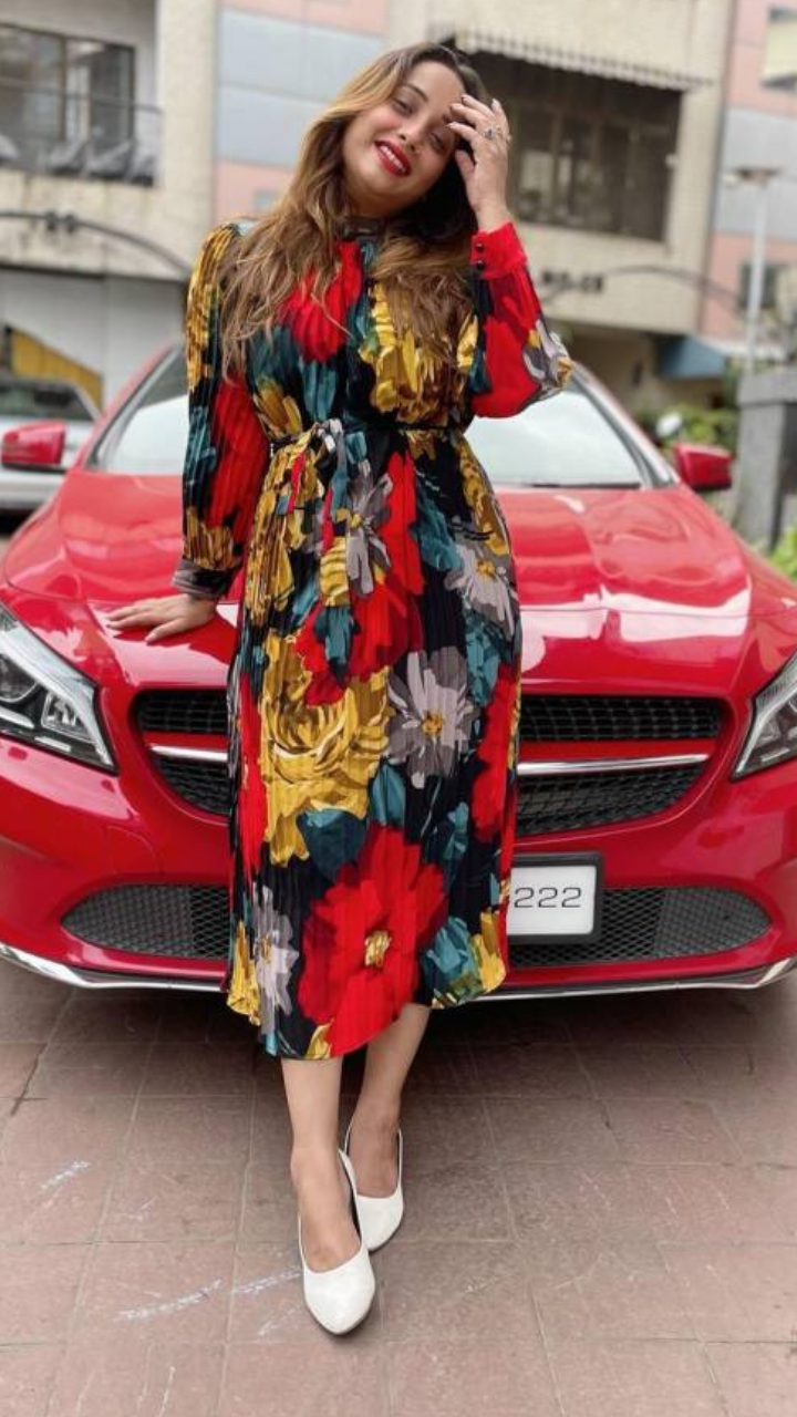 तस्वीर में कार के आगे खड़ी रानी के किलर लुक्स के लोग दीवाने हो रहे हैं।