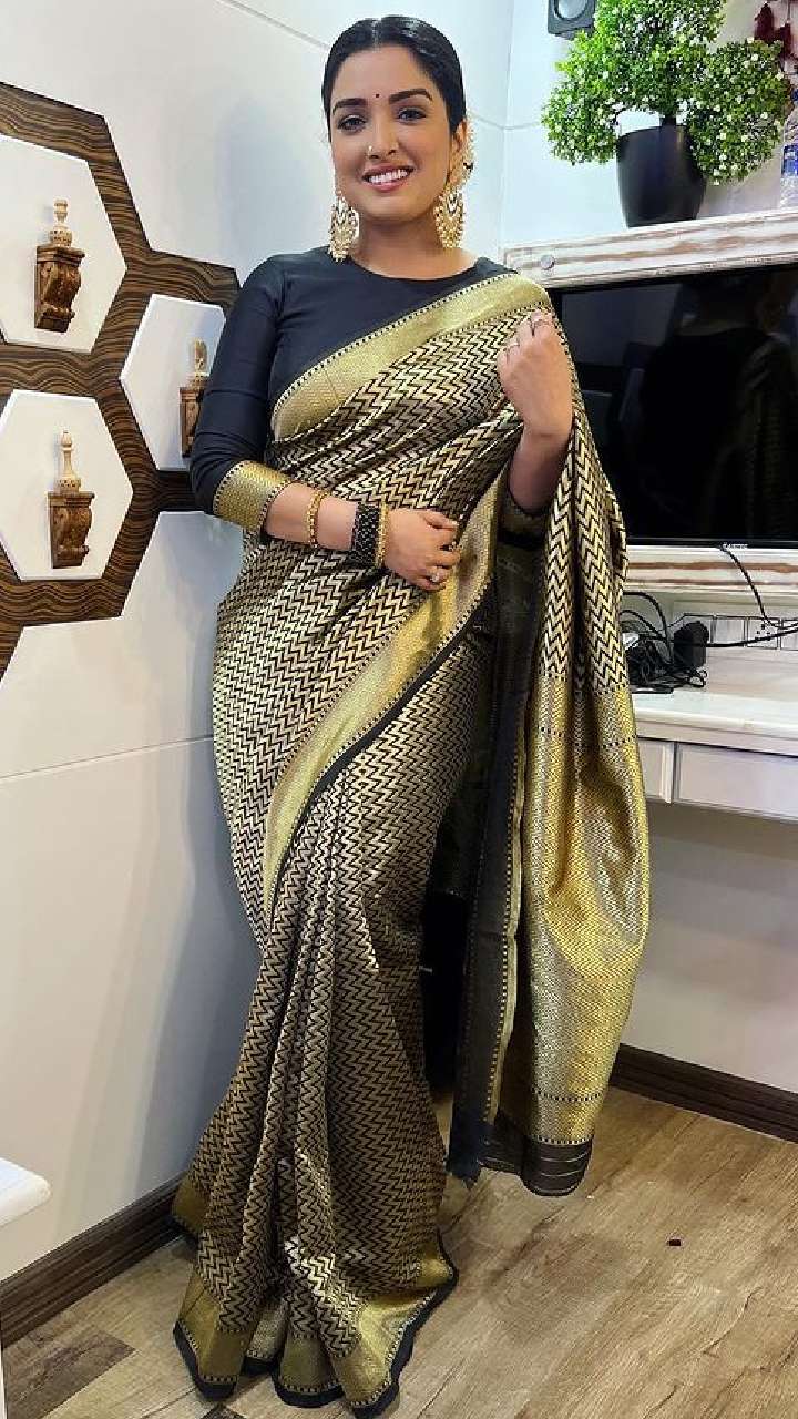 अभिनेत्री का ये ब्लैक सिल्क साड़ी लुक भी एकदम डिफरेंट है।