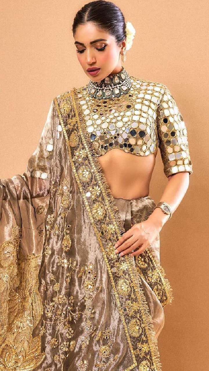 सिंपल साड़ी को हैवी और एलिगेंट लुक देना चाहती हैं, तो एक्ट्रेस की तरह ही मिरर वर्क ब्लाउज कैरी करें। इसमें आप बला की खूबसूरत लगेंगी।