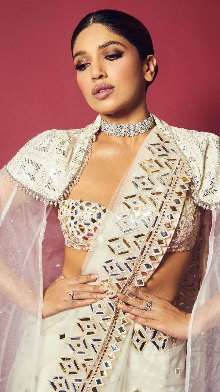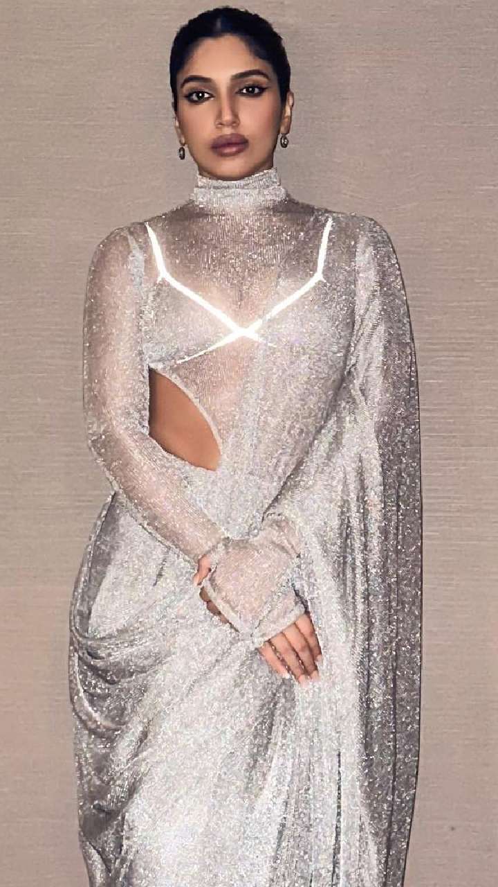 यदि आपको पार्टी में किलर दिखना है तो भूमि का स्ट्रैपी ब्लाउज लुक बेस्ट ऑप्शन है।