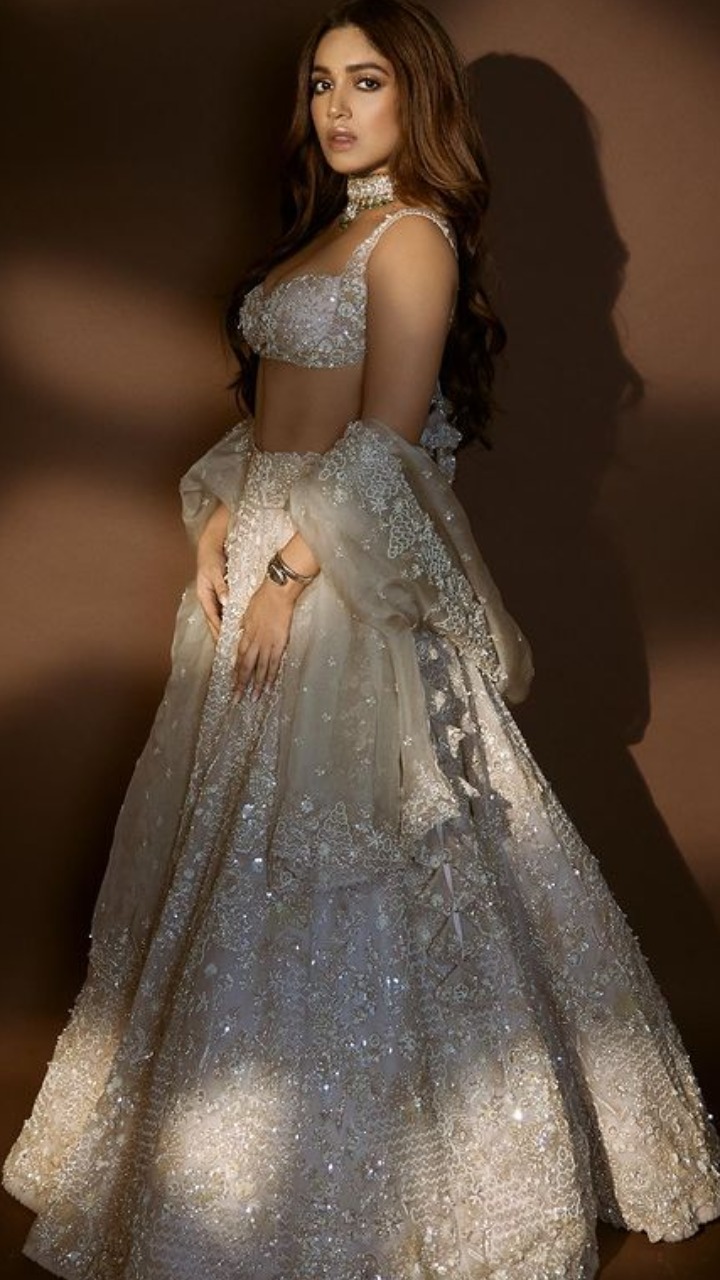 भूमि पेडनेकर इस ऑफ व्हाइट लहंगा में बला की खूबसूरत लग रही हैं।