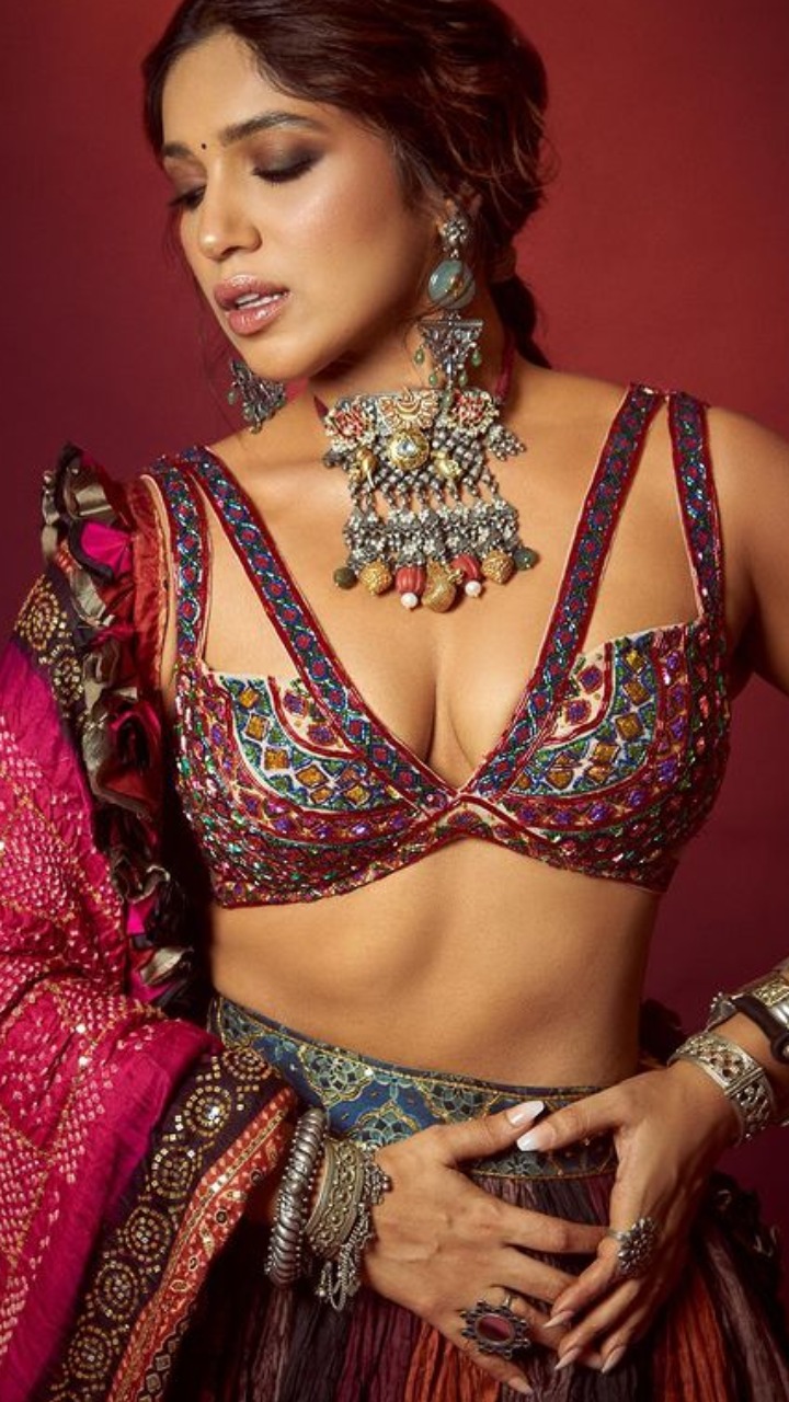भूमि ने गॉर्जियस लहंगे के साथ खूबसूरत चोकर नेकलेस पहना हैं जो एक्ट्रेस की खूबसूरती पर चार चांद लगा रहा हैं।