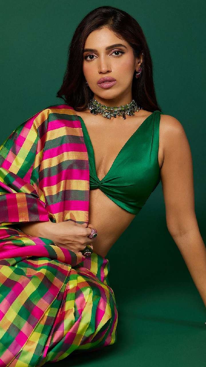 भूमि के पास एथनिक का शानदार कलेक्शन है, जिसके साथ वह स्टाइलिश ब्लाउज पेयर करती हैं। ऐसे में आप भी उनके फैंसी ब्लाउज डिजाइन से आइडिया ले सकती हैं।