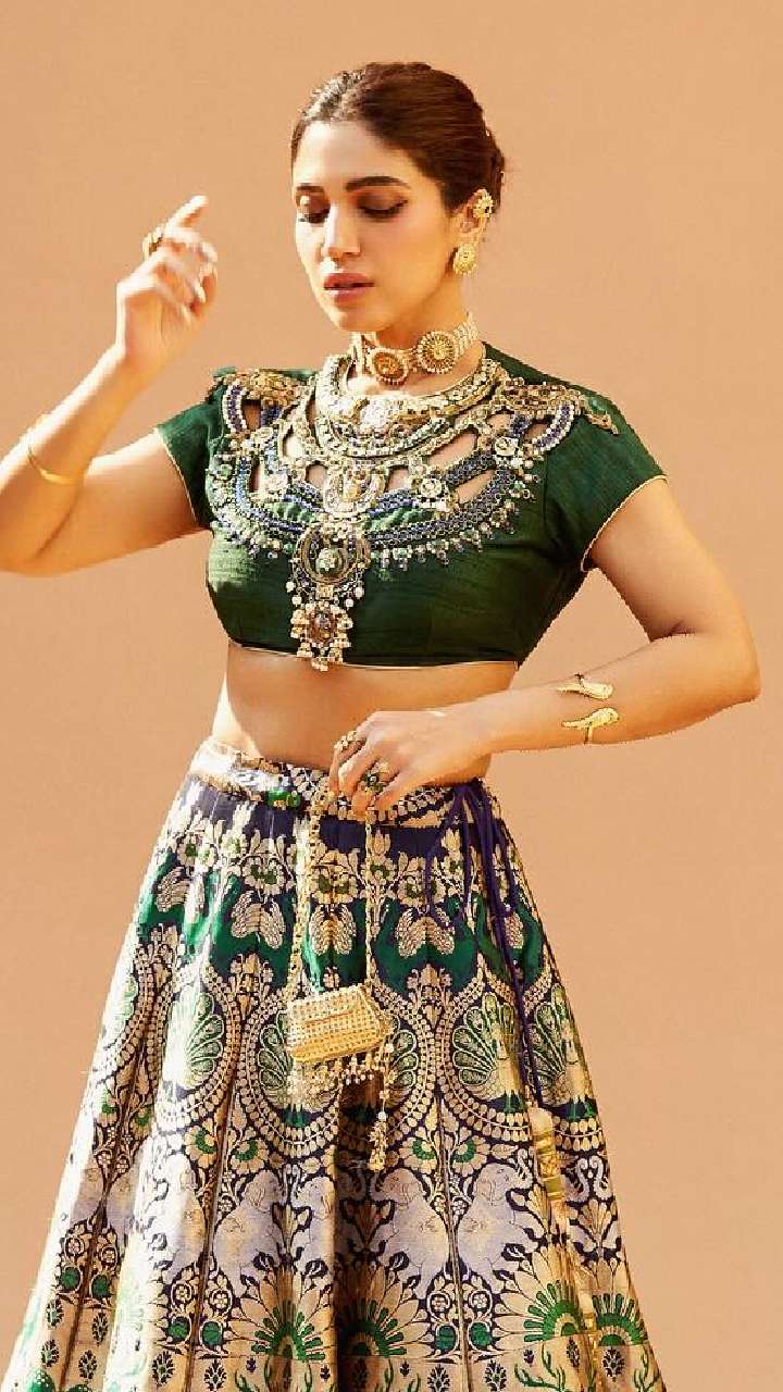 एक्ट्रेस ने लहंगा लुक को हैवी बनाने के लिए डिजाइनर ब्लाउज स्टाइल किया है। अगर आप भी एक्ट्रेस के जैसी खूबसूरत दिखना चाहती हैं, तो उनके इस लुक को कॉपी करें।