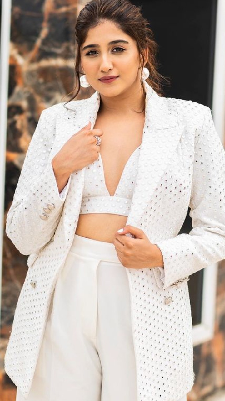 निमृत ने तस्वीर में व्हाइट कलर का कोट-पैंट और ब्रॉलेट पहना हुआ है। कानों में भी व्हाइट कलर का झुमका एक्ट्रेस के ओवरऑल लुक से काफी मैच कर रहा हैं।