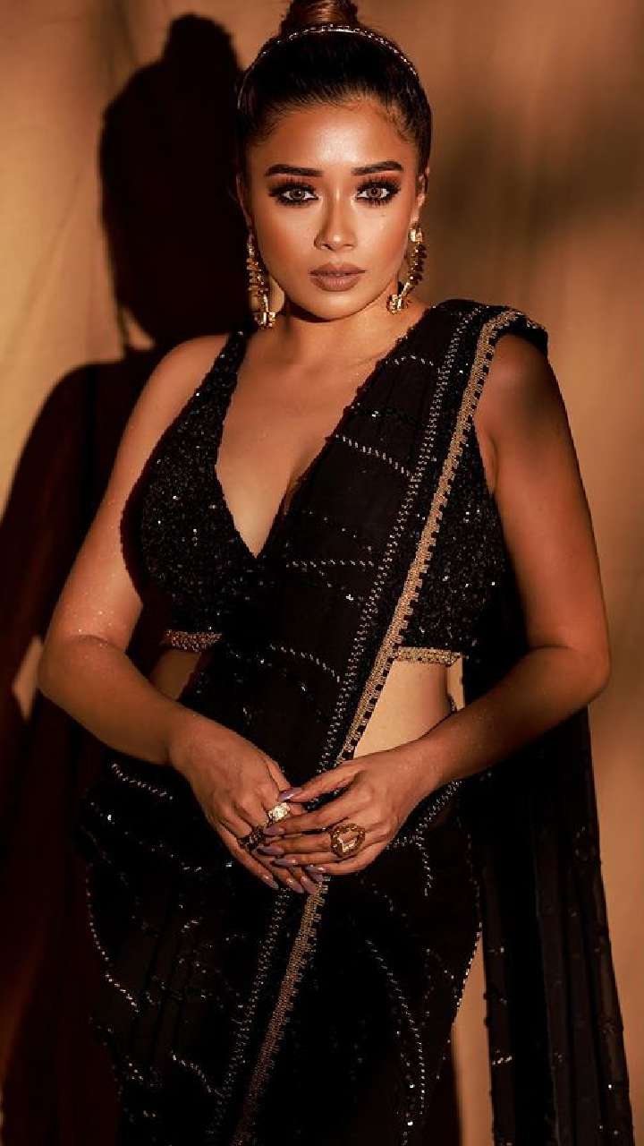 डीवा का ये ब्लैक शिमरी साड़ी लुक बेहद किलर है।