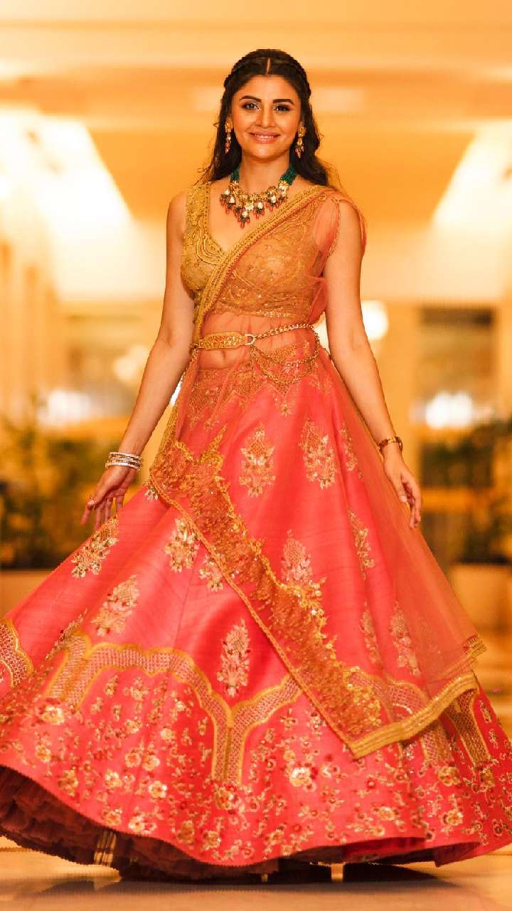 मालती चाहर एंब्रॉयडरी लहंगा में प्रिंसेस से कम नहीं लग रही हैं। इस तरह के लहंगे शादी-फंक्शन के लिए बेस्ट है।